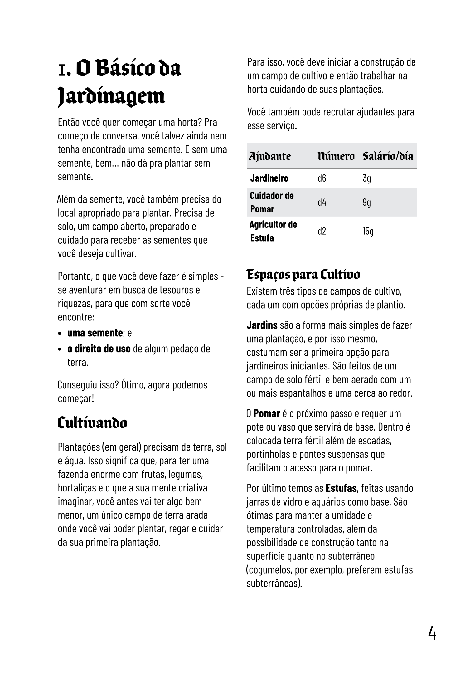 In this supplement you will find rules for building and taking care of a garden, allowing your character to use the cultivated crops to prepare meals.