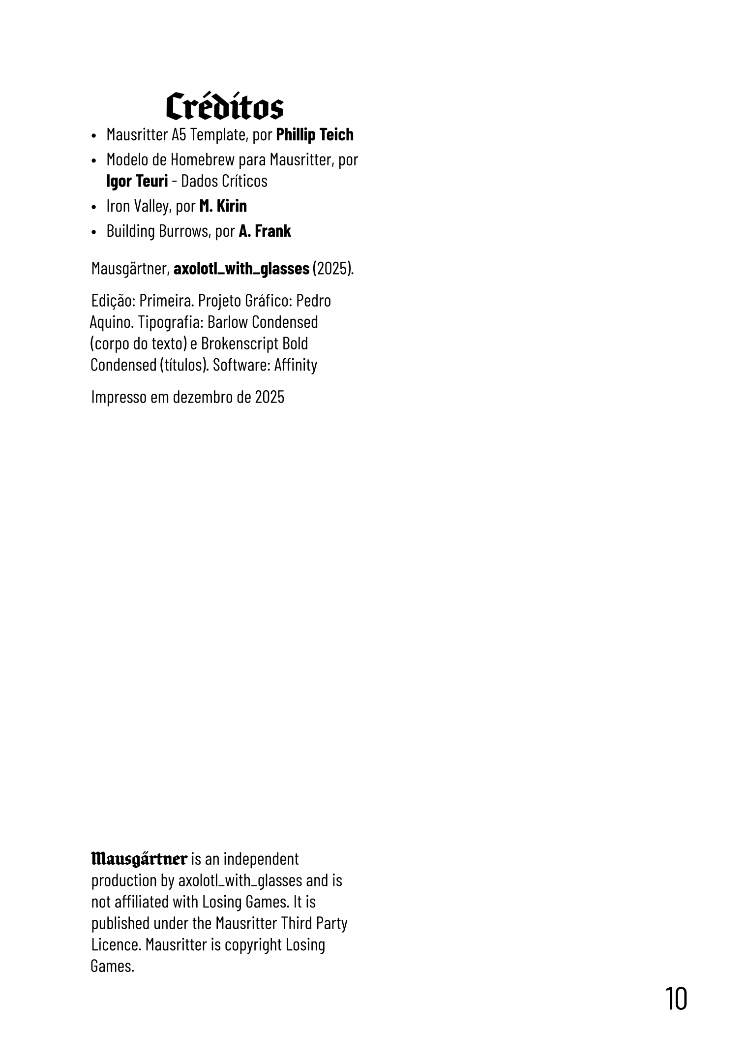Mausgärtner (PTBR)'s itch.io pageFormat or Layout Used