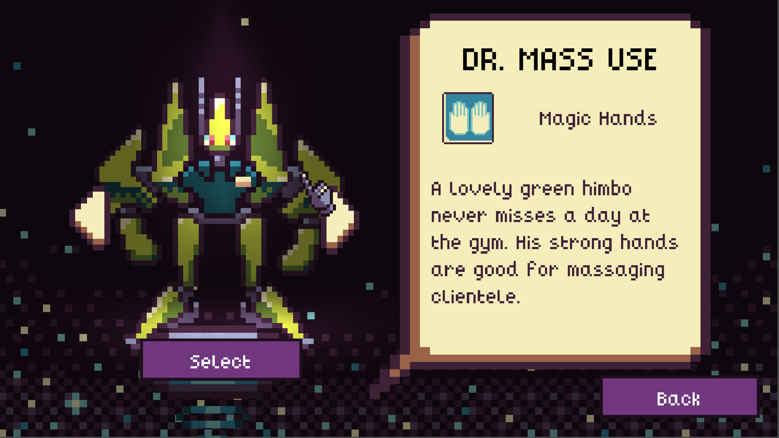 This game is so cute! The art and music do a really good job of giving the game a lot of charm. My only issue was that the mini games could've had more visual/sound effects to provide some game feel, making it more tactical. Especially the face/body rub minigames which did not indicate at all that I was doing something until I finished one portion. Perhaps sparks flying and the sound of power tools or something more akin to the cute pixel art style. Nevertheless, I think the idea of a fully fleshed-out robot spa game is really endearing