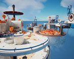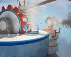 Grab the blue cubes and place them between the sparking power cables to complete the circuit and power different things.