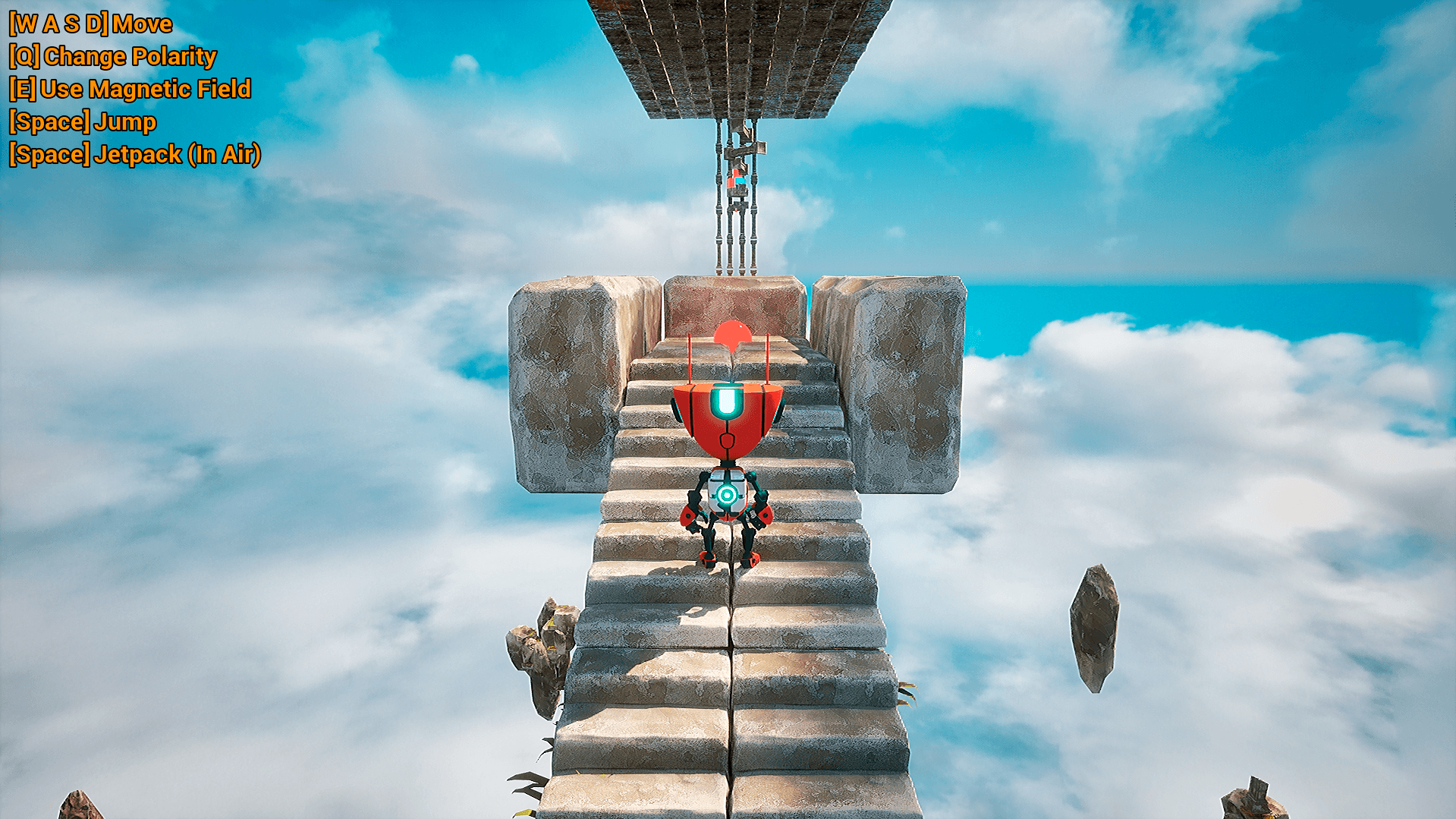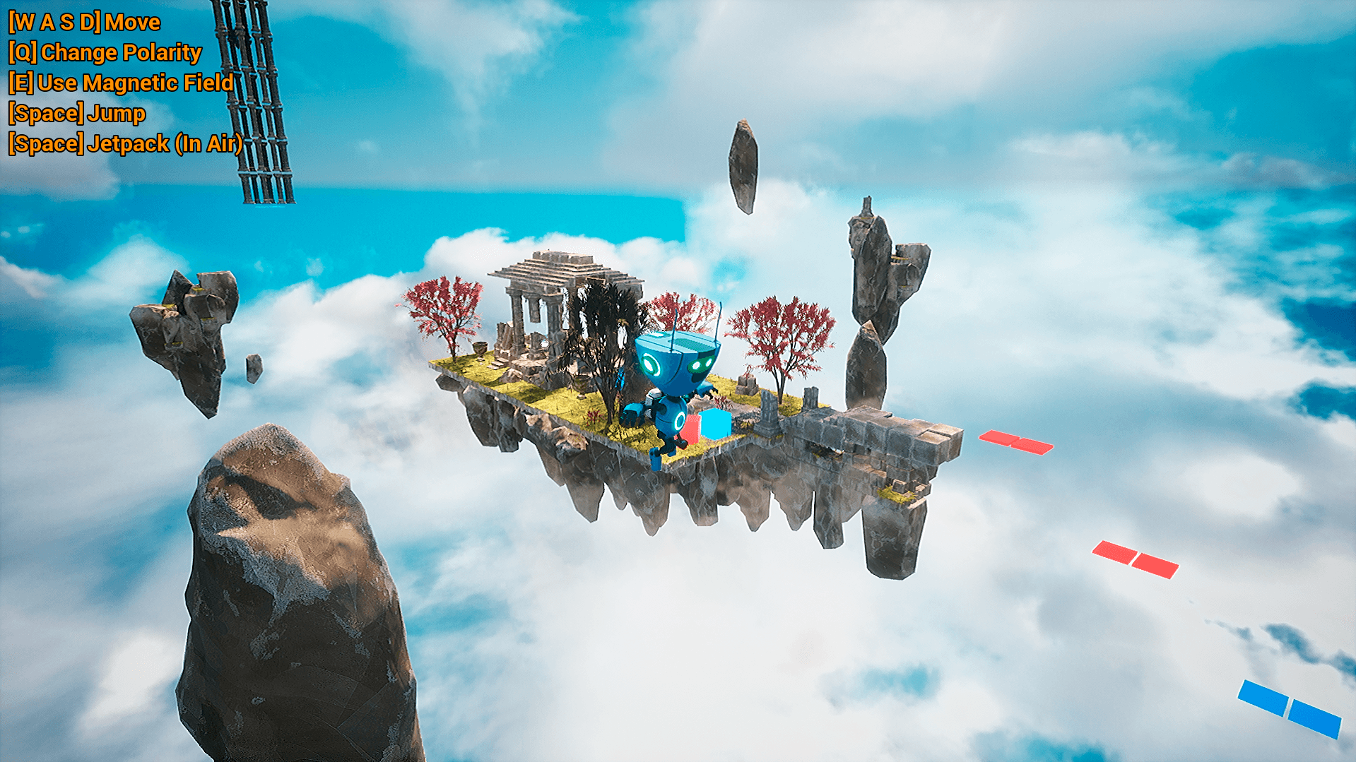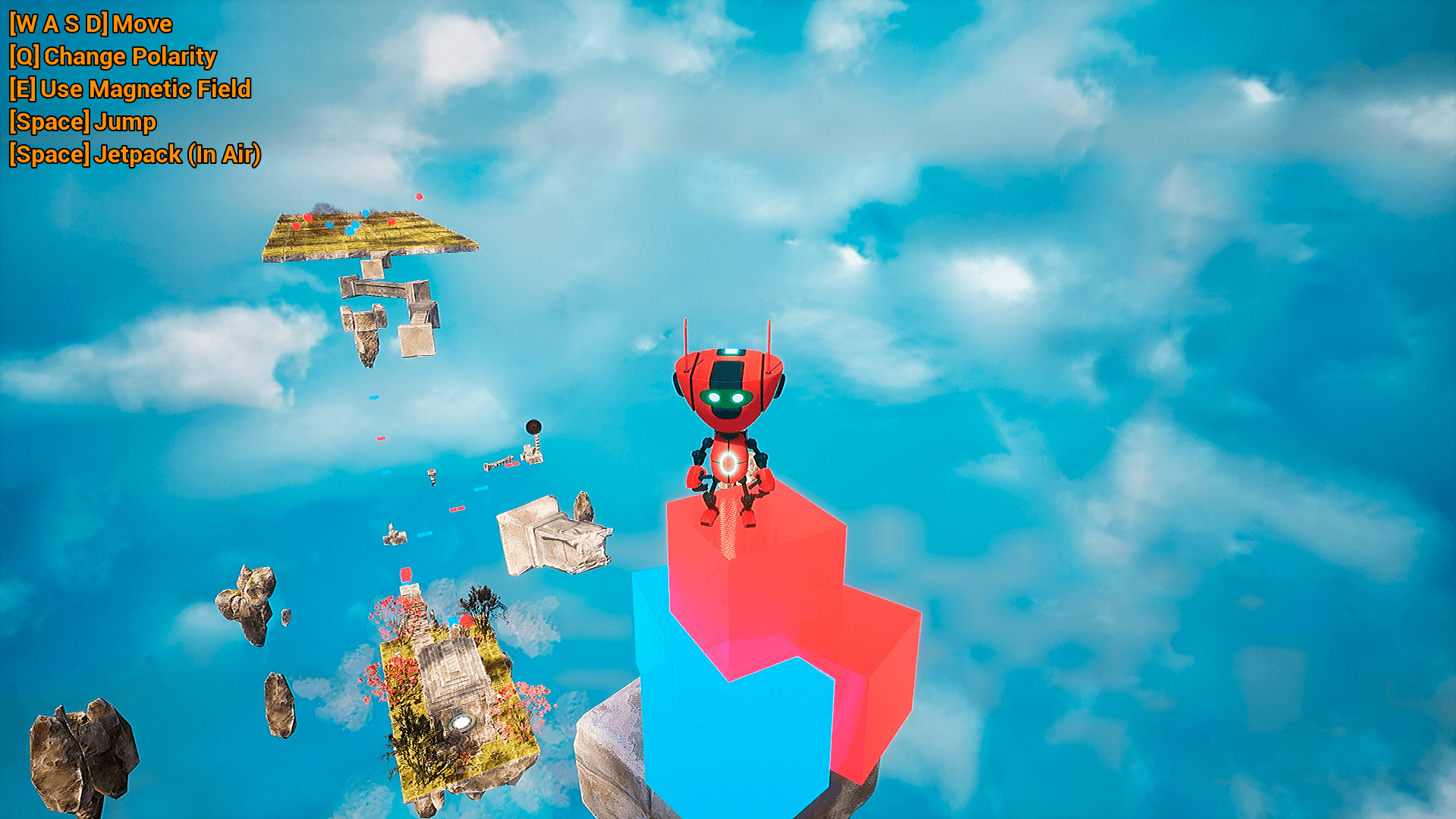Control a small robot who flips polarity to attract or repel magnetic objects. Remember: opposite charges attract, like charges repel — use this to solve puzzles, bounce, and glide through obstacles.