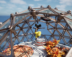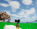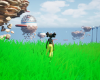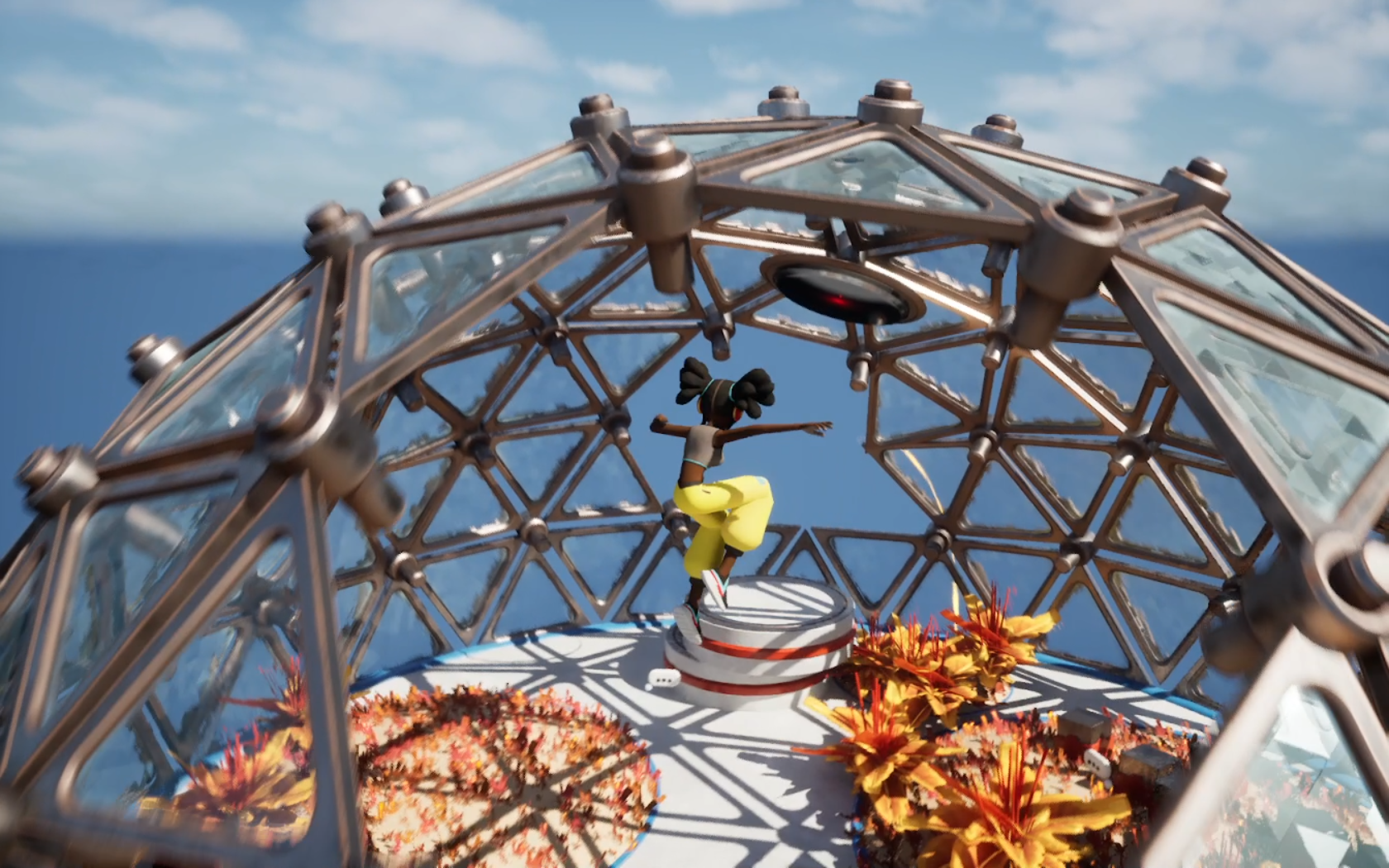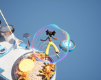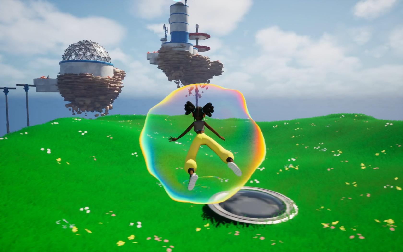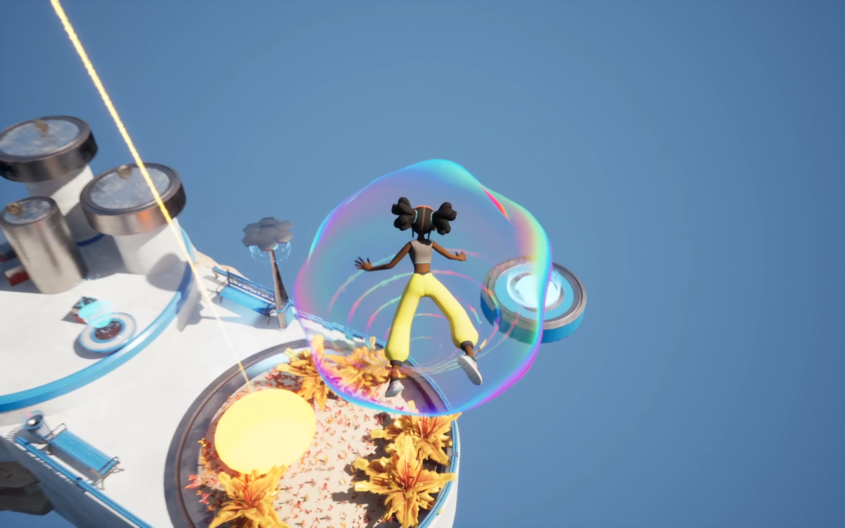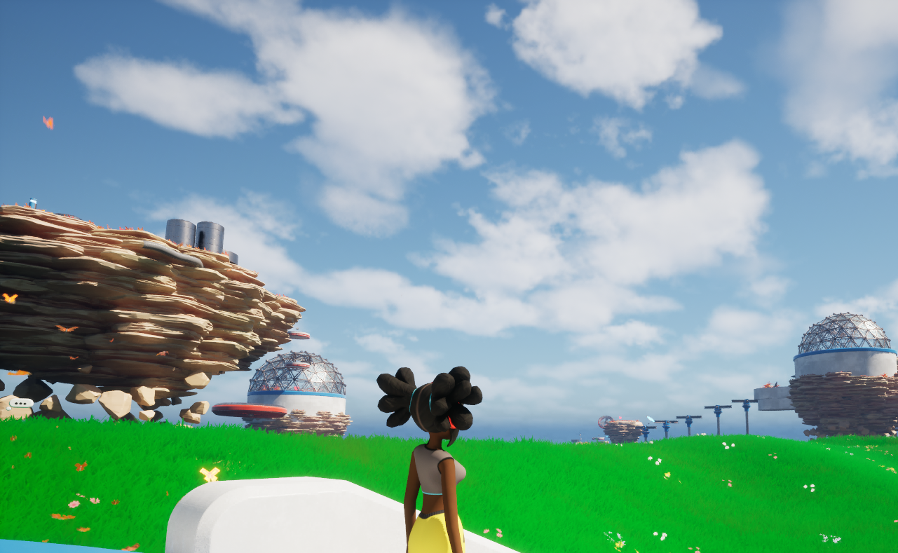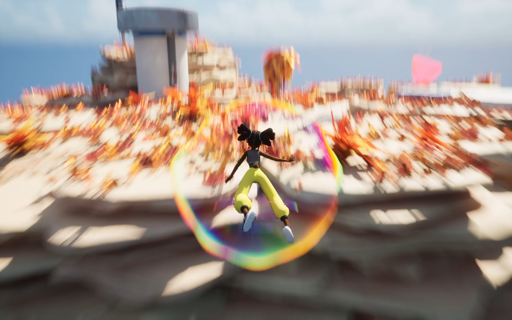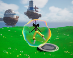 Reach the highest island, activate a switch that open the final door—then float back down and take in the view.