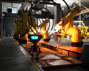 Navigate the robot factory, find the correct keycards while avoiding hazards, and uncover clues to stop the hacked robots and restore order