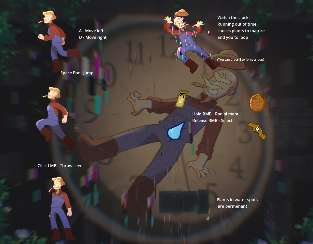 In order for the player to escape, a compound of placement and seeds are needed, the combination of both will grow plants that transform into platform to jump up and escape the waste dump pit, theres a time loop aspect to acquire back the seeds. The grown plants, some stay forever based on where you place them, as you go through loops, you will continue to go futher and further through the game using plants you place in previous loops.
