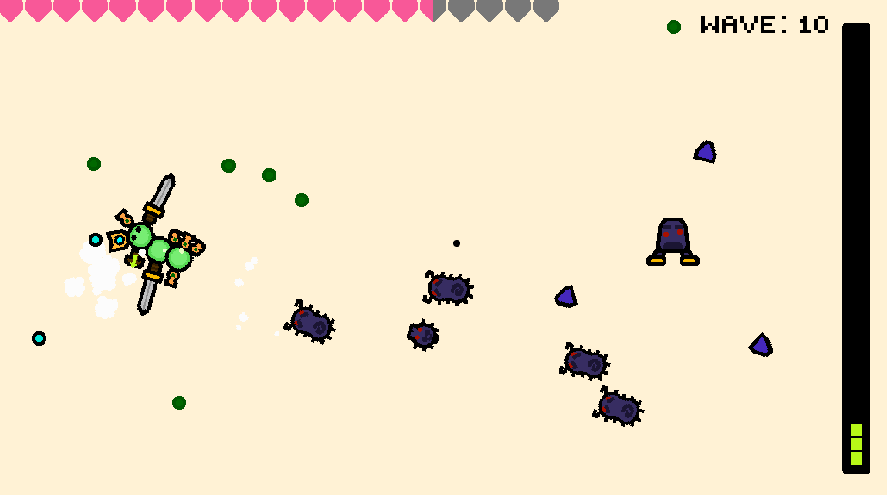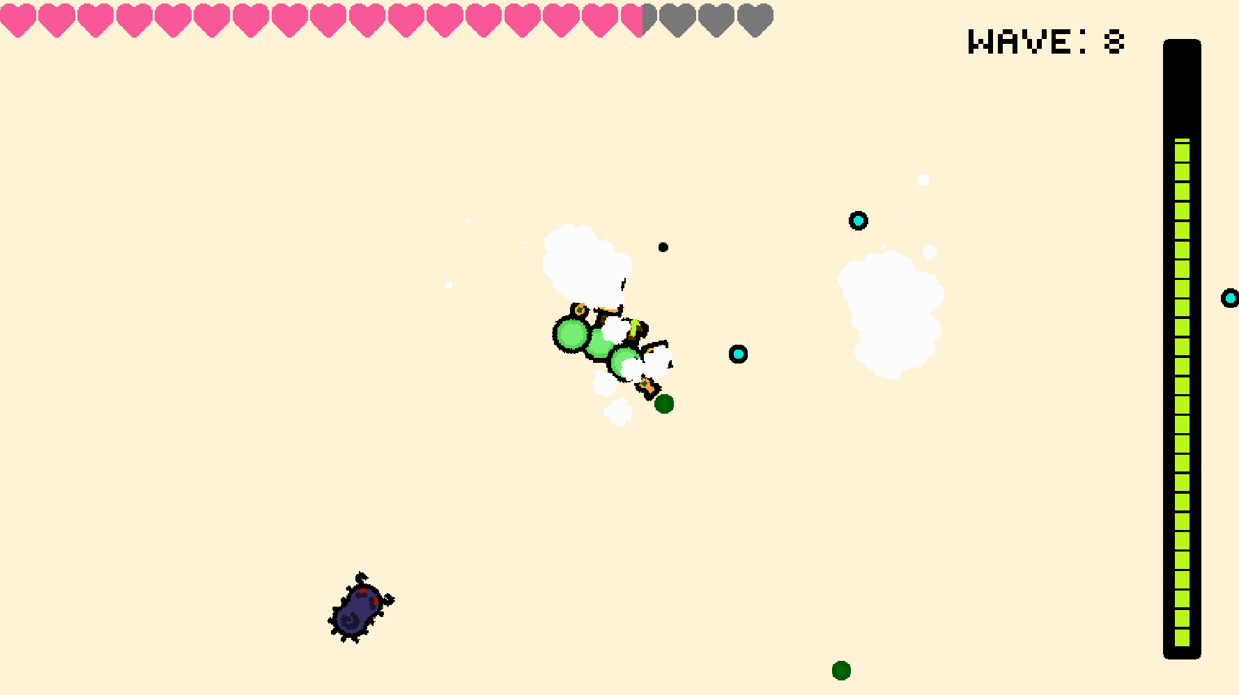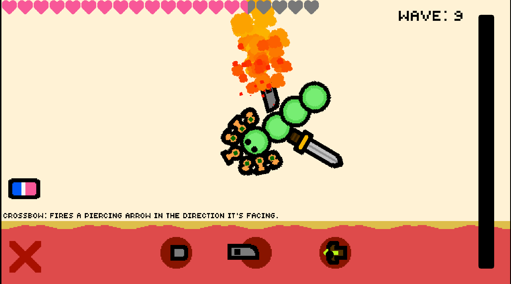 Awesome fun game. Was able to find some glitches that allowed you to stack weapons on weapons and slime blobs detached from the main blob, but didn't wreck the game and just made it more fun to play around with the combos!