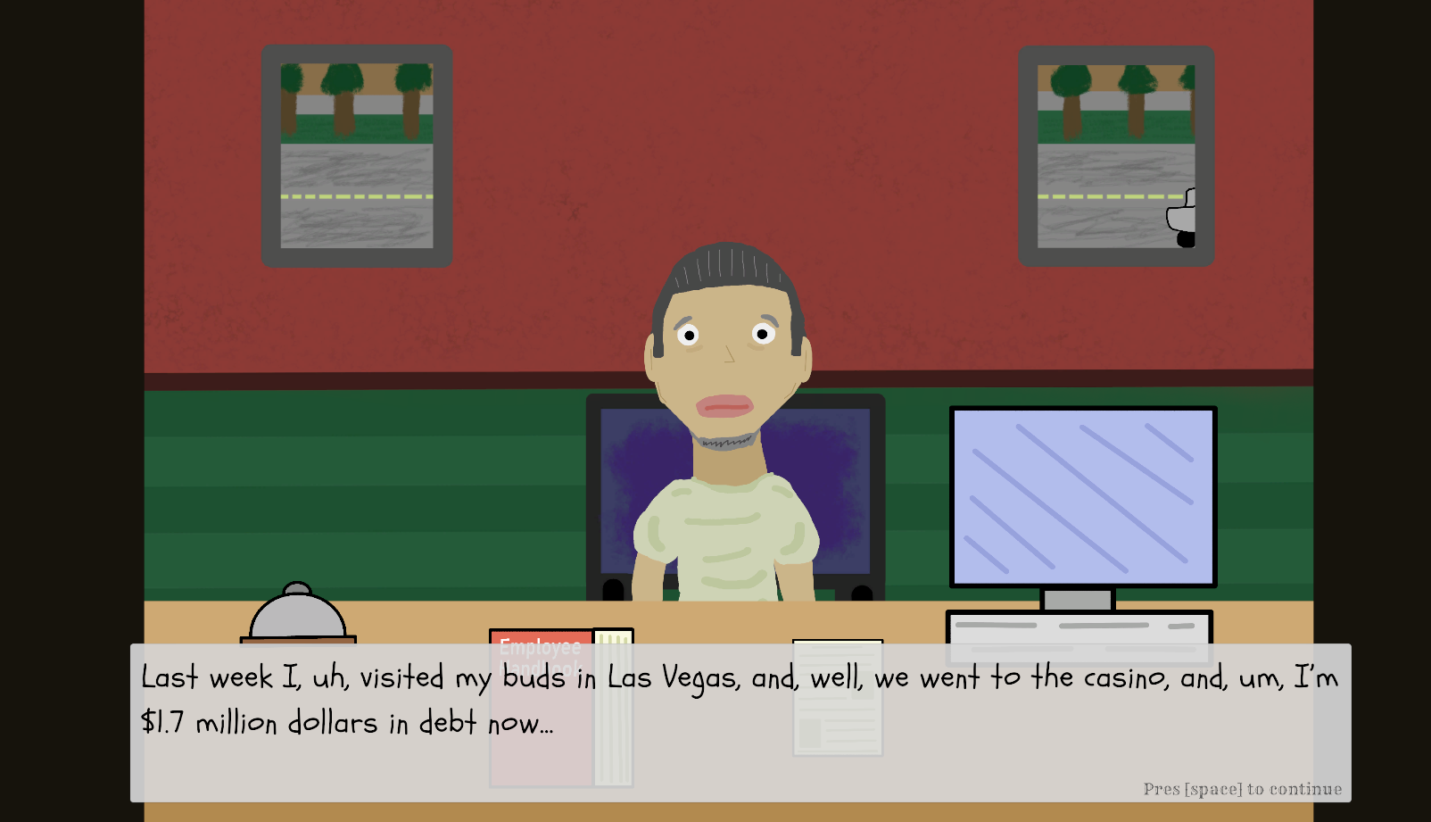 2. You play as someone giving out loans, which relates to compound interest. You have to decide whether they should receive it or not.
