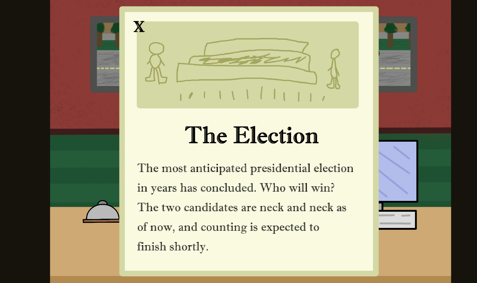 3. Over time, the president's policies compound to create worry amongst the people. Also, you as the player must face compounding moral choices as you decide to either stick with the company or help out the people.