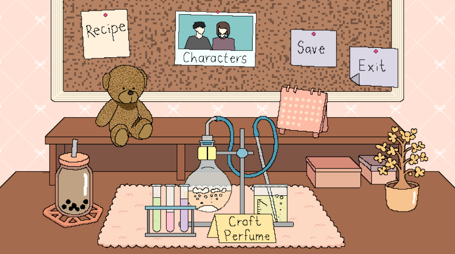 Based on the theme compound, this game sets in the school compound where freshmen starts their orientation day. Falling in love at first sight, the main character decided to mix compounds of chemicals to make a perfume that will attract her crush. Multiple people reaches out to her, but will she reach her goal?