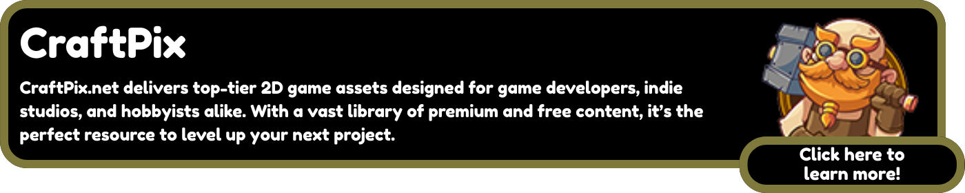 🥇 1st Place: - 1-year CraftPix membership (worth ~$48 USD) - A signed, digital certificate of achievement - Special role in our Discord community 🥈 2nd Place: - 1-year CraftPix membership (worth ~$48 USD) - A signed, digital certificate of achievement - Special role in our Discord community 🥉 3rd Place: - 1-year CraftPix membership (worth ~$48 USD) - A signed, digital certificate of achievement - Special role in our Discord community 🌟 4th Place: - 1-year CraftPix membership (worth ~$48 USD) - A signed, digital certificate of achievement 🌟 5th Place: - 1-year CraftPix membership (worth ~$48 USD) - A signed, digital certificate of achievement |