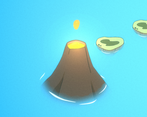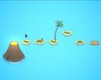 The movement is all on a grid. Jump from island to island reaching the next volcano