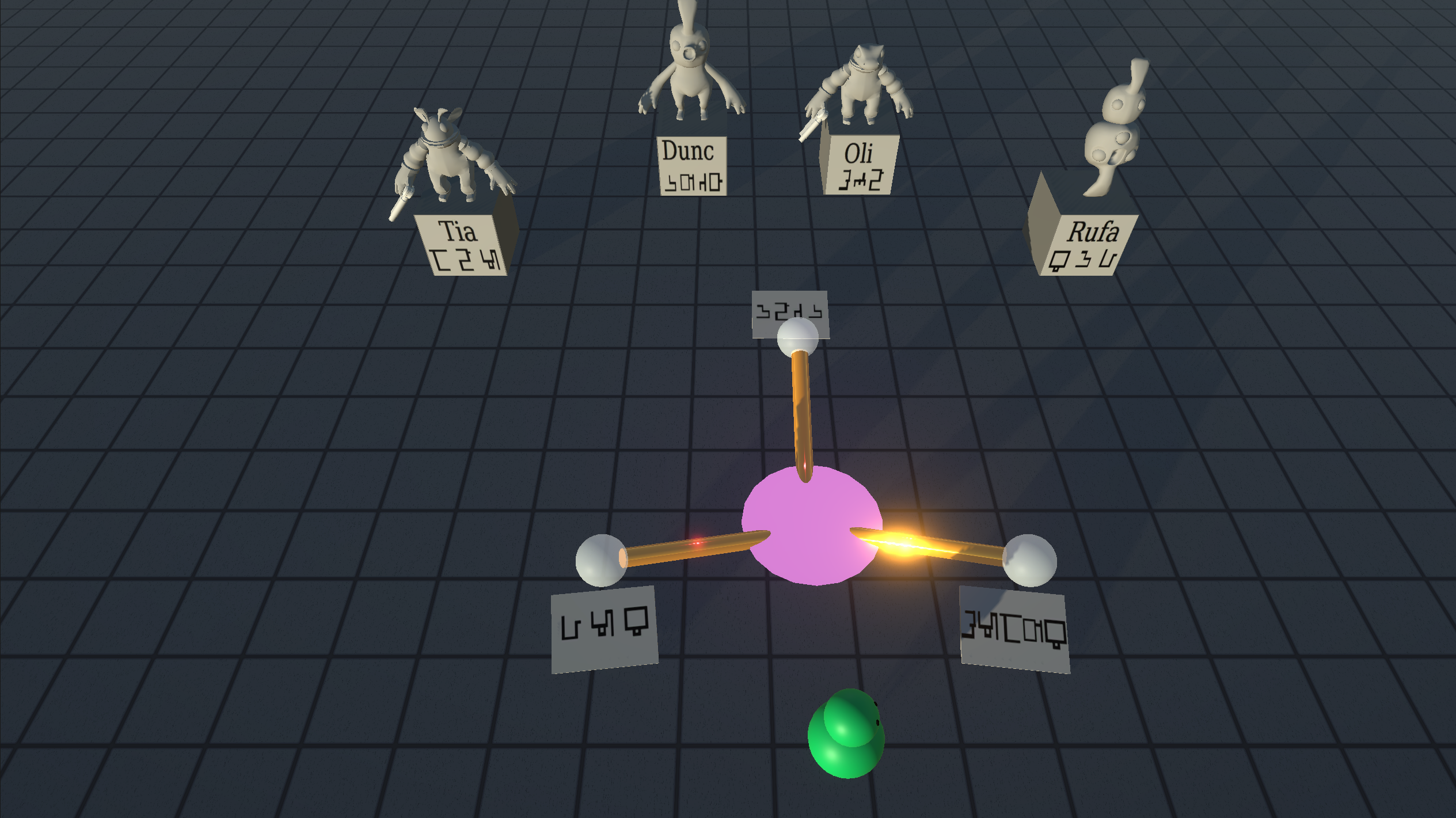 Developed a complete alien language with different phonetic alphabet from scratch. The player has to figure out the alien language to solve the puzzle