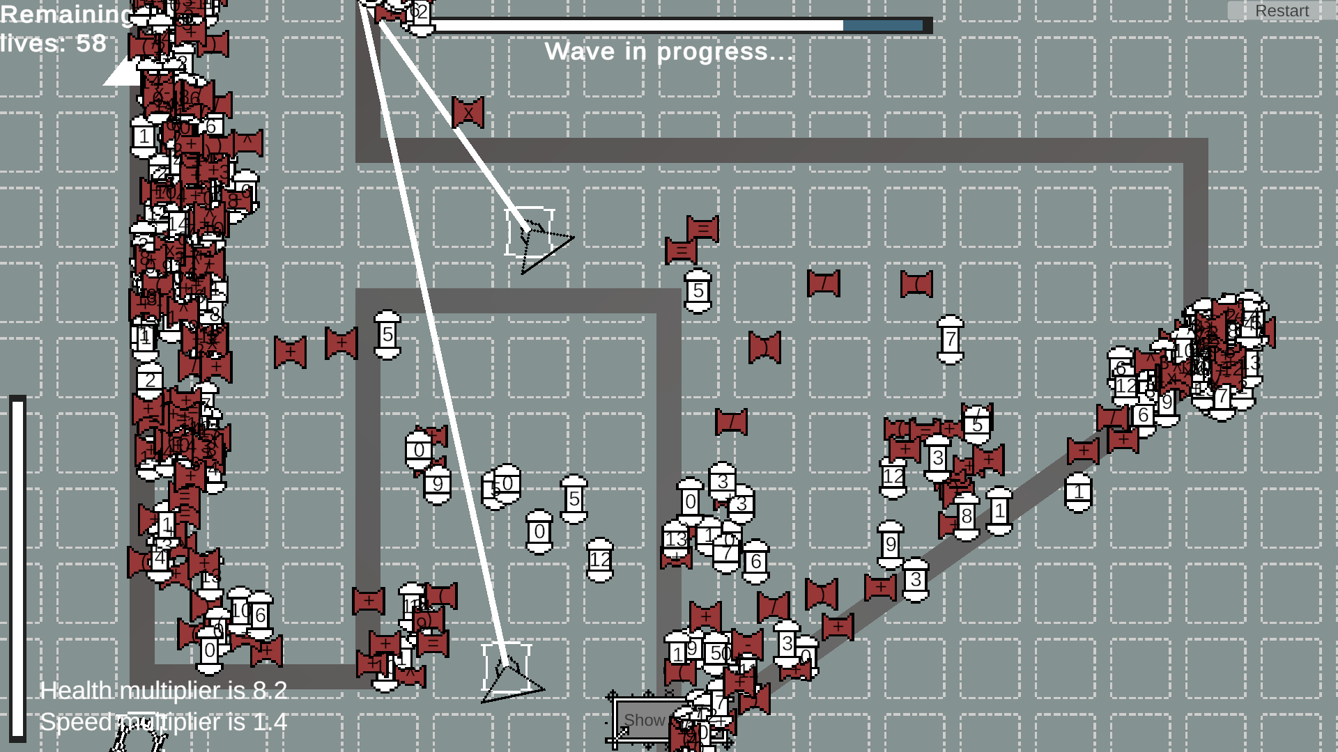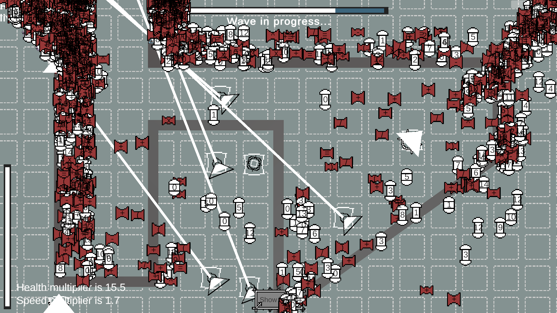 The upgrade mechanic is very interesting, but results in absurd power growth that ironically makes it harder to upgrade other towers since you now have to sift through a bunch of numbers and operators. As much as I like how powerful you can become, it is a bit much by the end. Maybe having multiple levels that you progress through so you're not constantly overpowered?