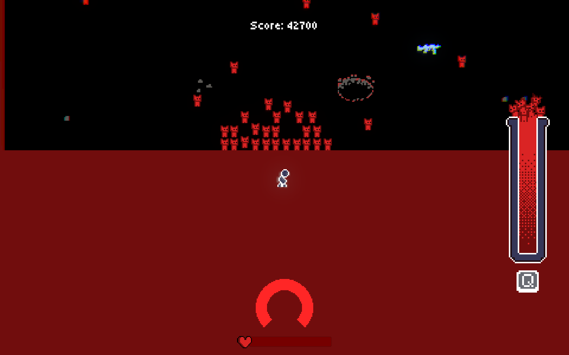 This is a wall glitch I accidentally performed towards the end of my playthrough, softlocking the game. Aside from this odd bug, the game was pretty neat, although I felt like the gameplay for me got a little repetitive. If the game was a little bit more difficult and had a greater variety of enemies, I think the game would be much better. At this moment I feel like you can last forever as long as you play just right. Other than that, nice job.