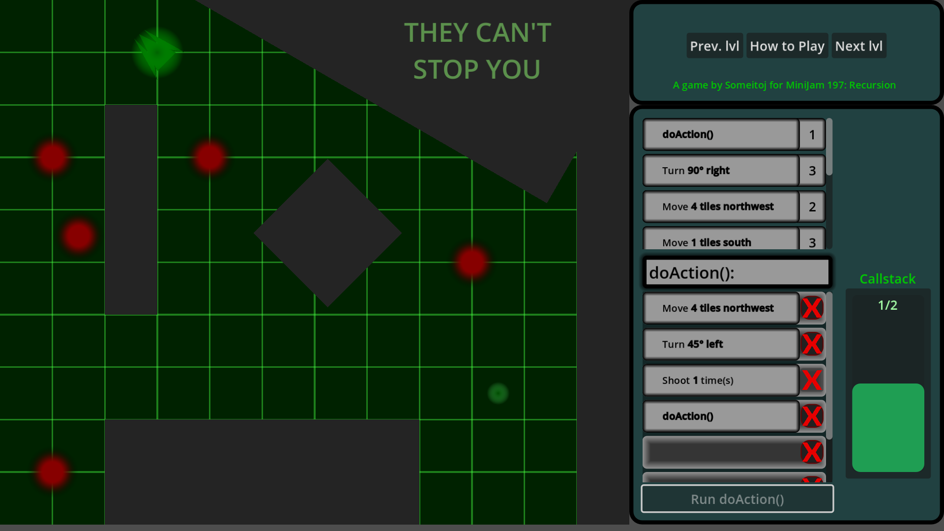 I had planned a hint system that removed instructions that you didn’t need to use. Honestly I should’ve removed a few “fakeout” instructions in the last 3 levels. Adding those was not the right approach to make the levels more difficult. Just clutters your ability to plan something out.