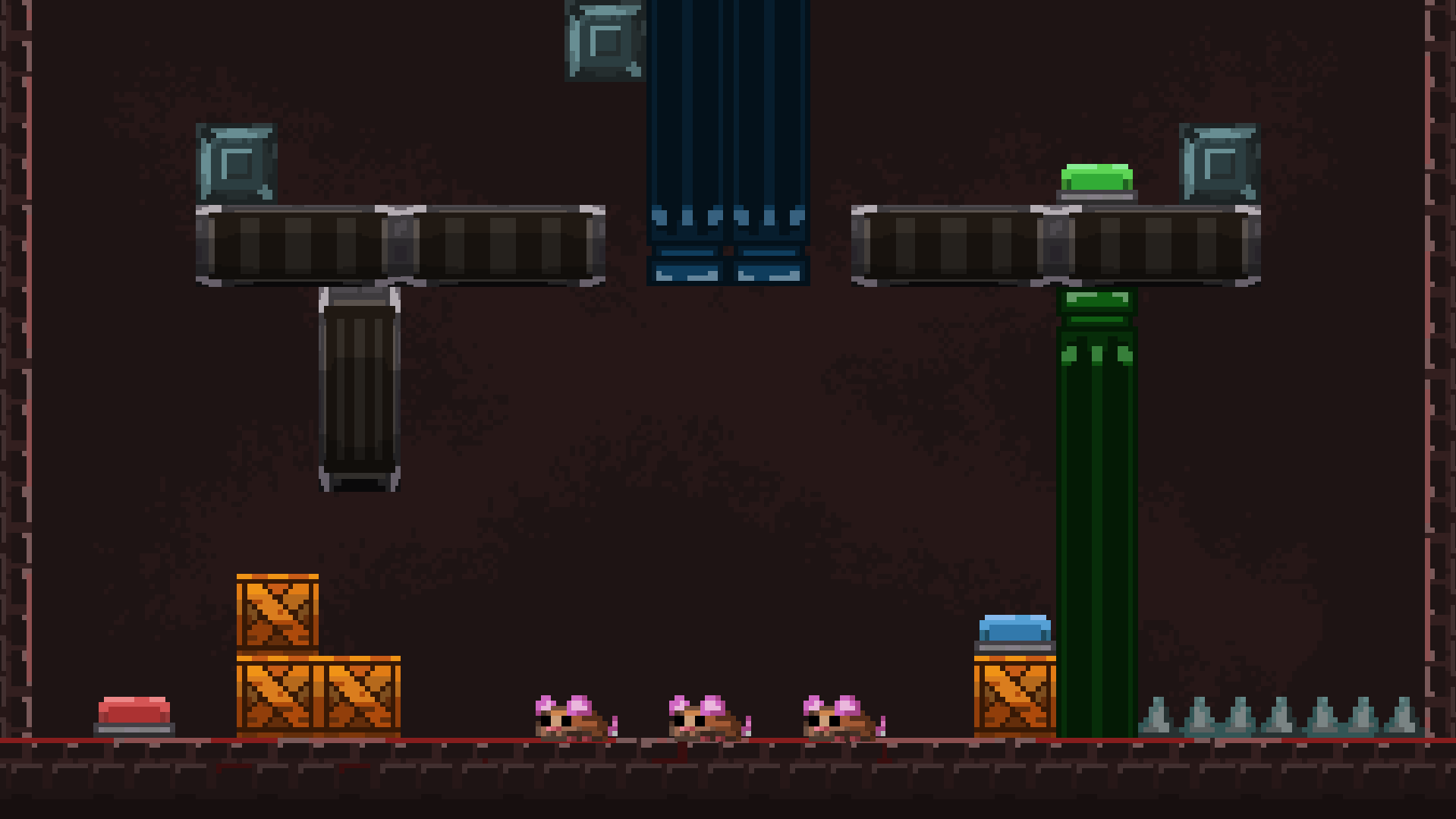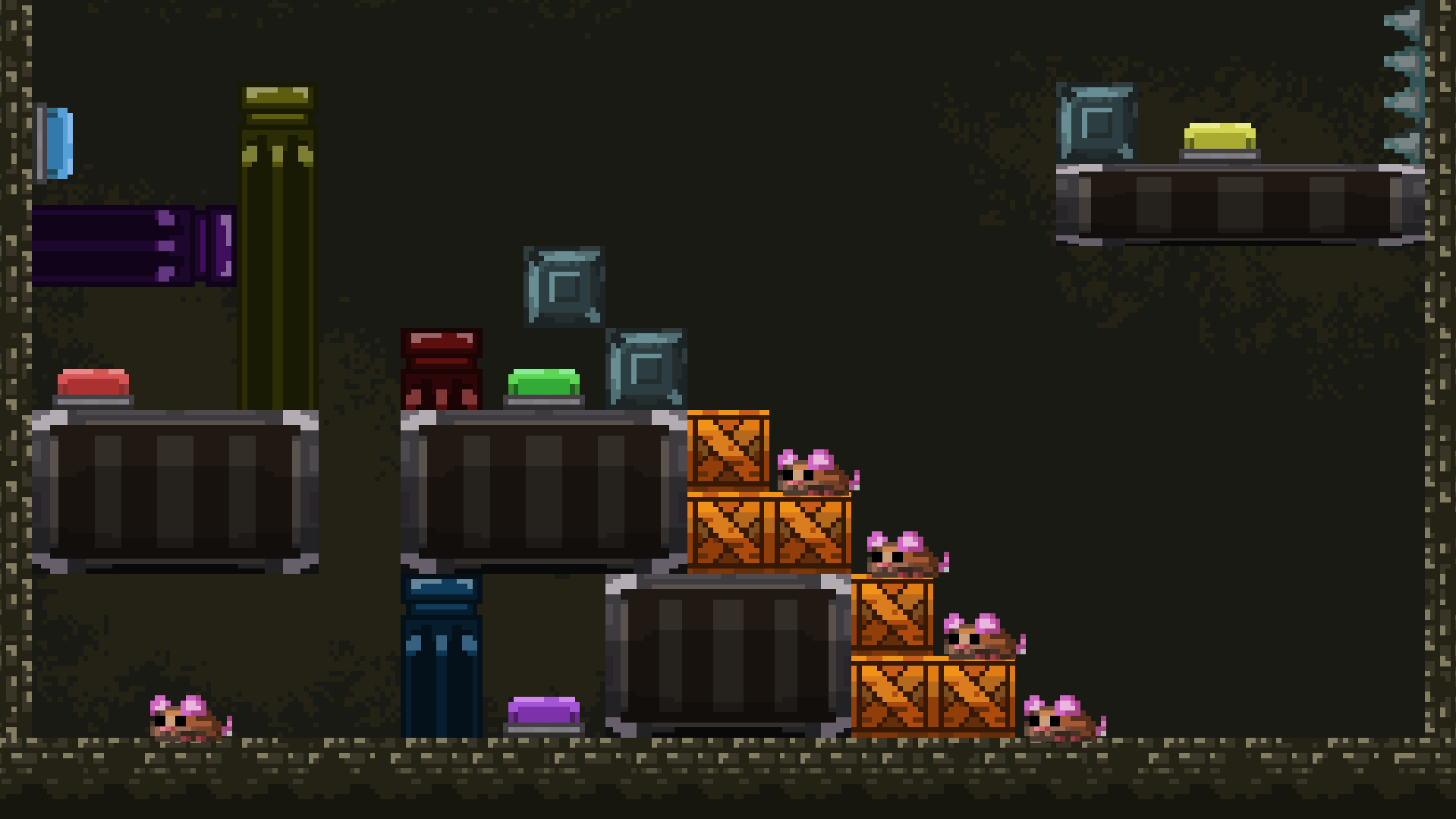 Got stuck in the second level. I got as far as to get one of the mice to the top, and even pressed the blue button so that the top mouse could jump over to the green button, but I fell in the process. And it took me so much work just to get 1 mouse up to the top that I couldn't do it again.