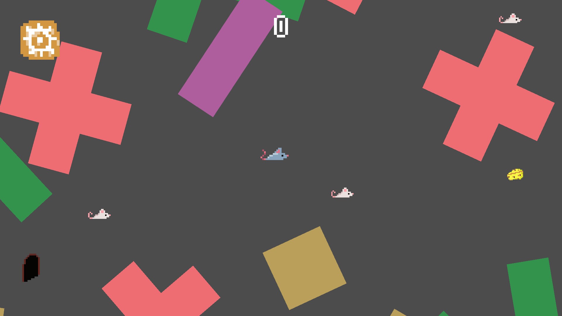 simple but great game. perfect level of difficulty (mouse and rat speed, mouse detection range, amount of mice and obsticles in the map). Great variety of shapes meaning each shape can be used to dodge or hide from the mice in different ways.