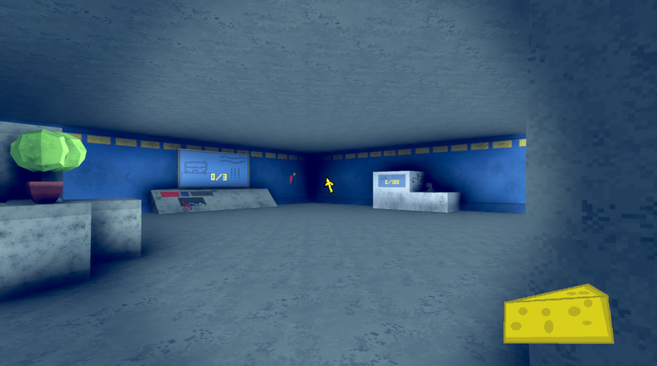 Cool level design, great sound and style, immersive and fun! When I found out you can hide inside the lockers it all made sense! I like that you can pick up multiple objects and they stack, and I like how scary the mouse is.