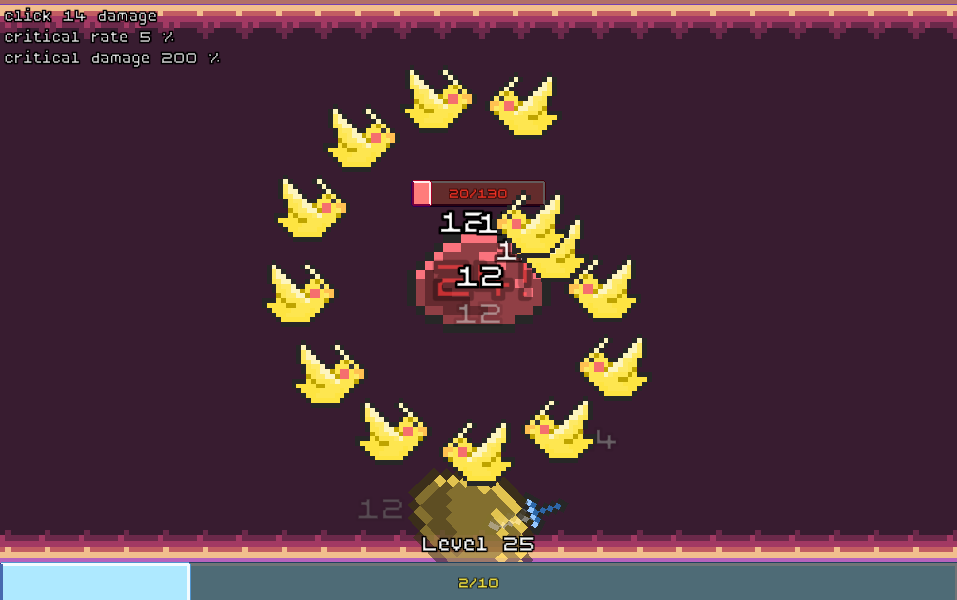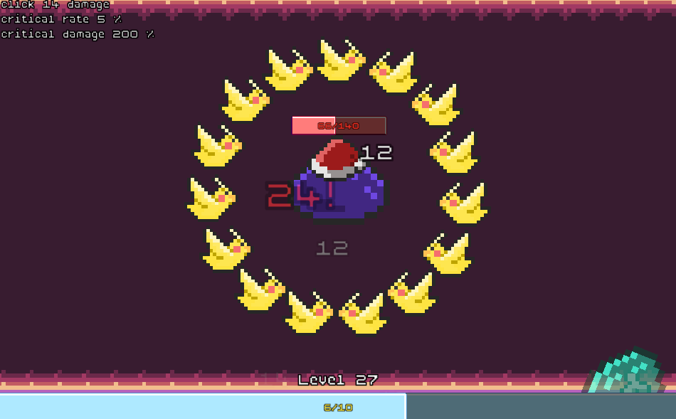 I made it to level 18, but found that it got pretty repetitive after 10 levels. I'd love to see some story about why you're clicking slimes, and some sort of achievements to give me a reason to keep going.