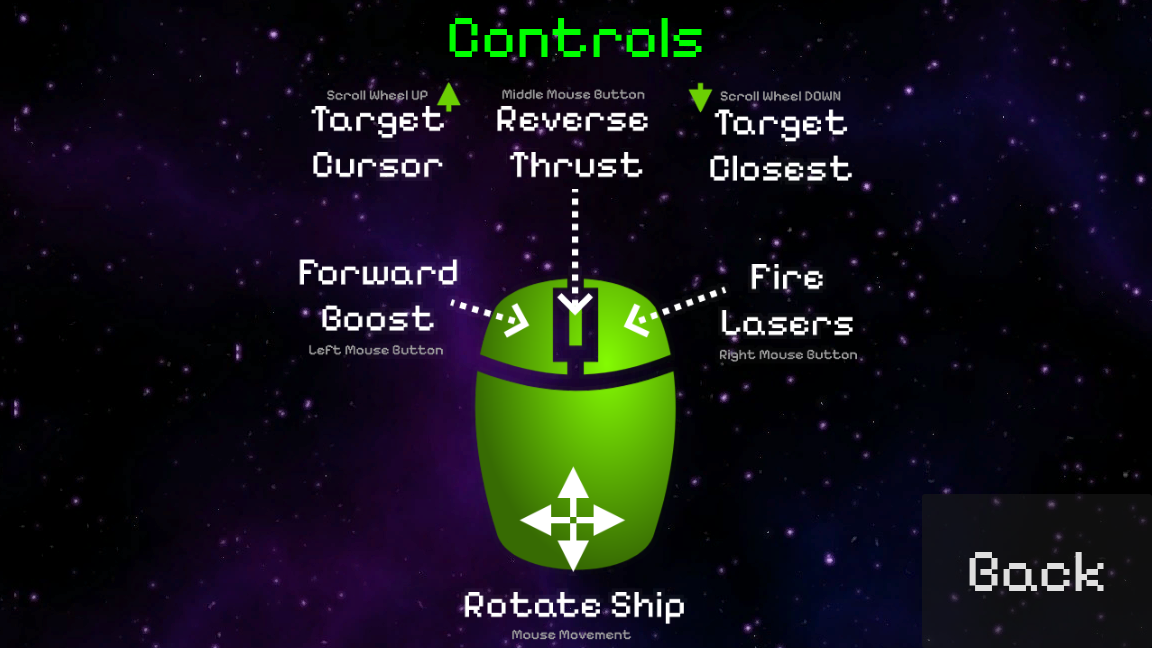 Thought a lot about ways to make a functional space ship controller with only a mouse - I hope everyone has a scroll wheel!