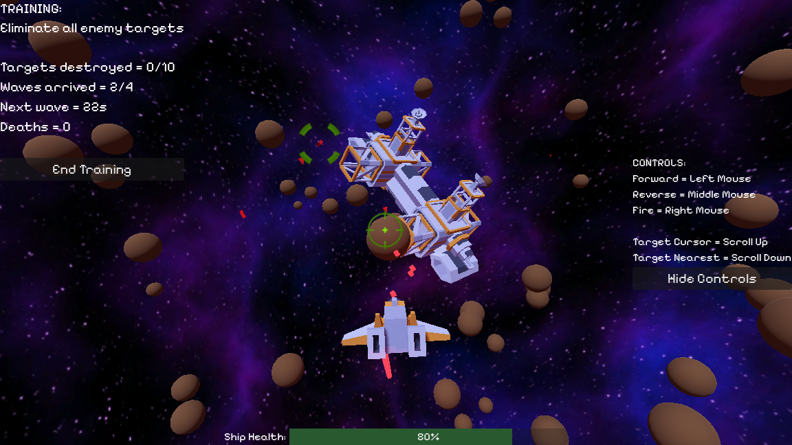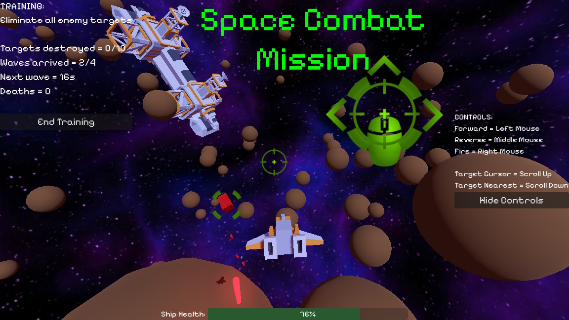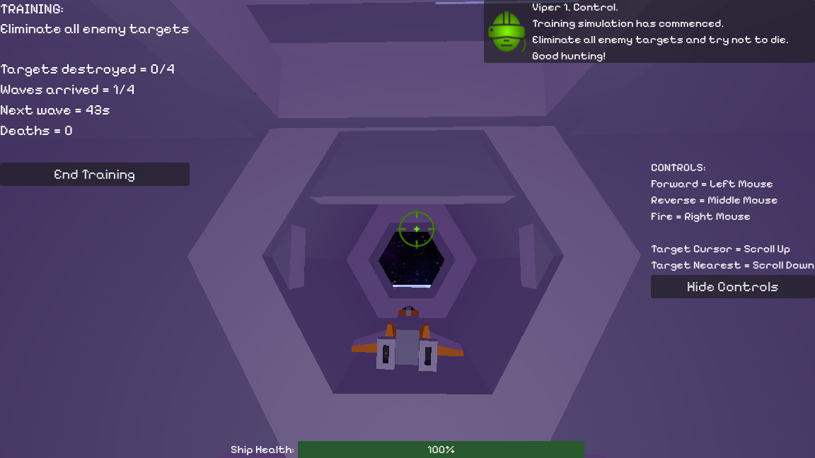 VERY nice concept, although the missions weren’t finished in time I think the idea /gameplay is REALLY GOOD. The training itself is fun (although, DAMN, it is difficult to hit the enemies)