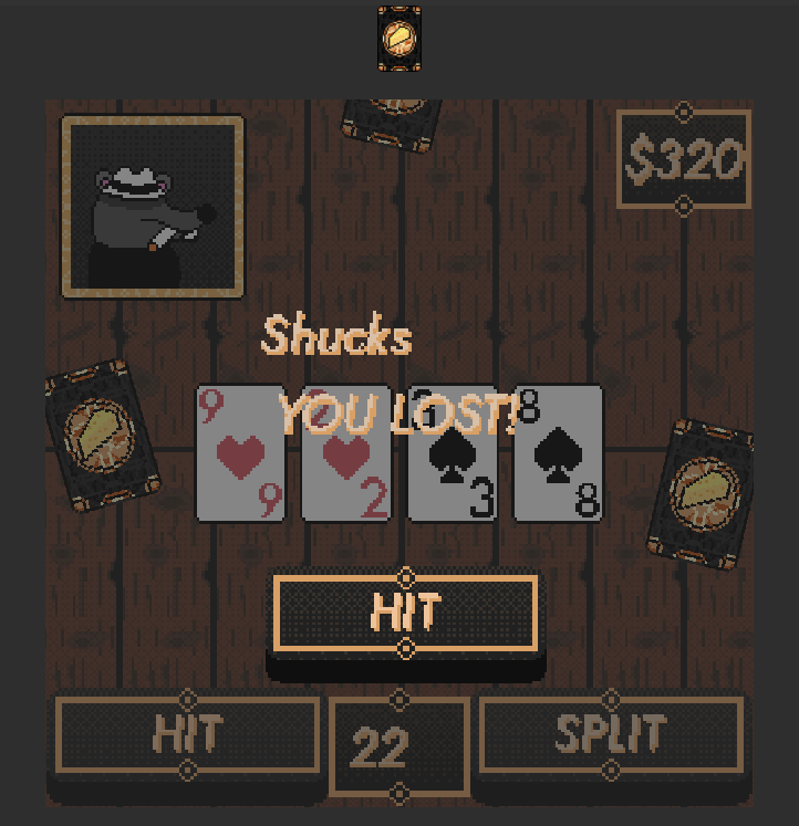 You hit a solid concept with this one! Plus the art style is so nice, the animations a tasty and the music is a solid beat :) You should be really proud! The combo of recursion and blackjack tickles my brain.