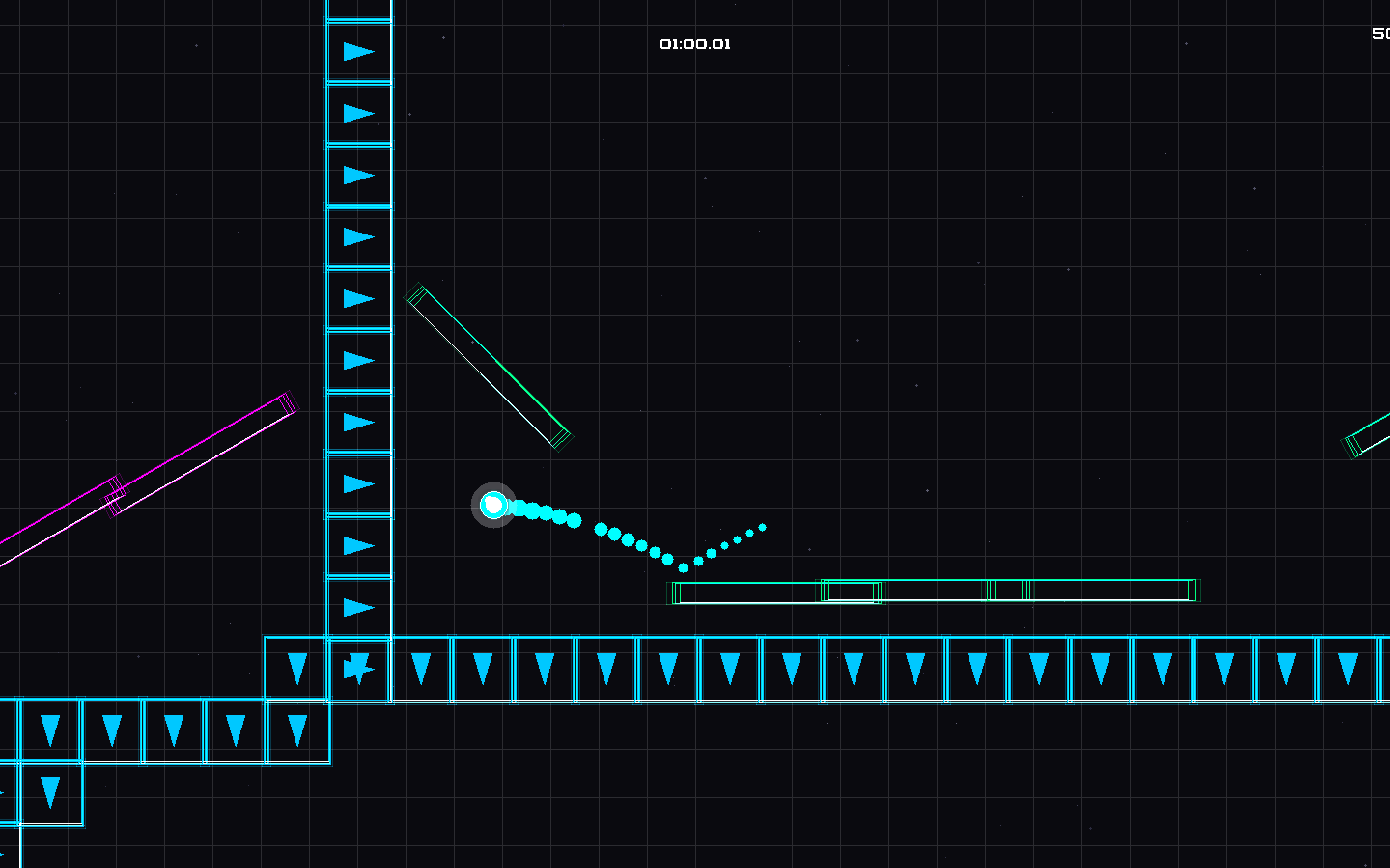 Actually very enjoyable game. The controls, visuals, concept and level are good and entertaining. But the game is unbeatable, not in a frustrating way. Even though it's fun to throw ur ball here and there (especially to juggle), but with this level design it's very hard to reach the end. That second layer on top doesn't have any floor, so you fall to the beginning of the game. Spent 12 minutes, just kept falling, i touched red platform once, and then fell in a tiny hole between purple platforms right to the start of the game