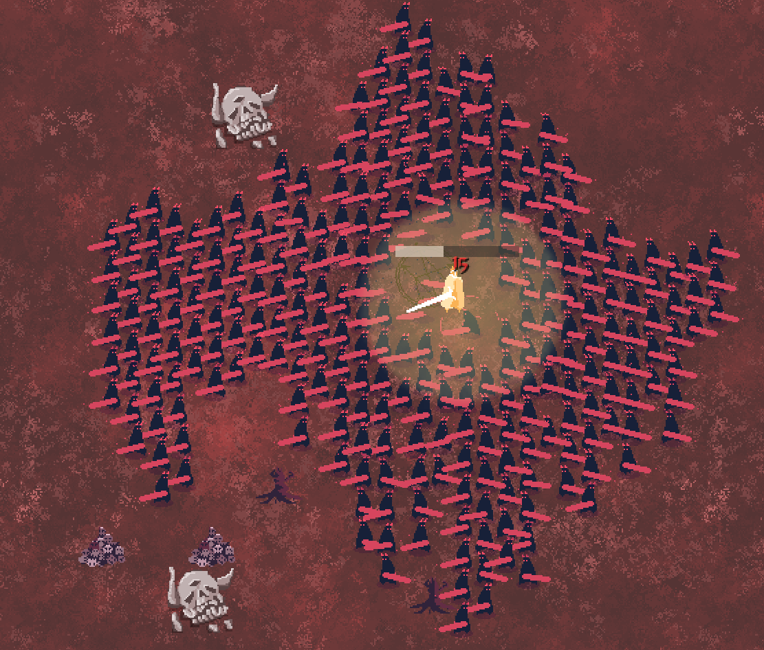This was soooo cool. My favorite game of the jam so far. It took me ~6 approachs and half an hour to finally beat the knight. I downloaded the windows build and I still had pretty hard performance issues whenever the demons were all huddled up together. I assume it’s something pathfinding related? The UI doesn’T scale well for a 4k display, it’s really small. But that’s all just nitpicks, amazing game! Screenshot is a moment where I had like 3 frames per second and my pc is somewhat capable.