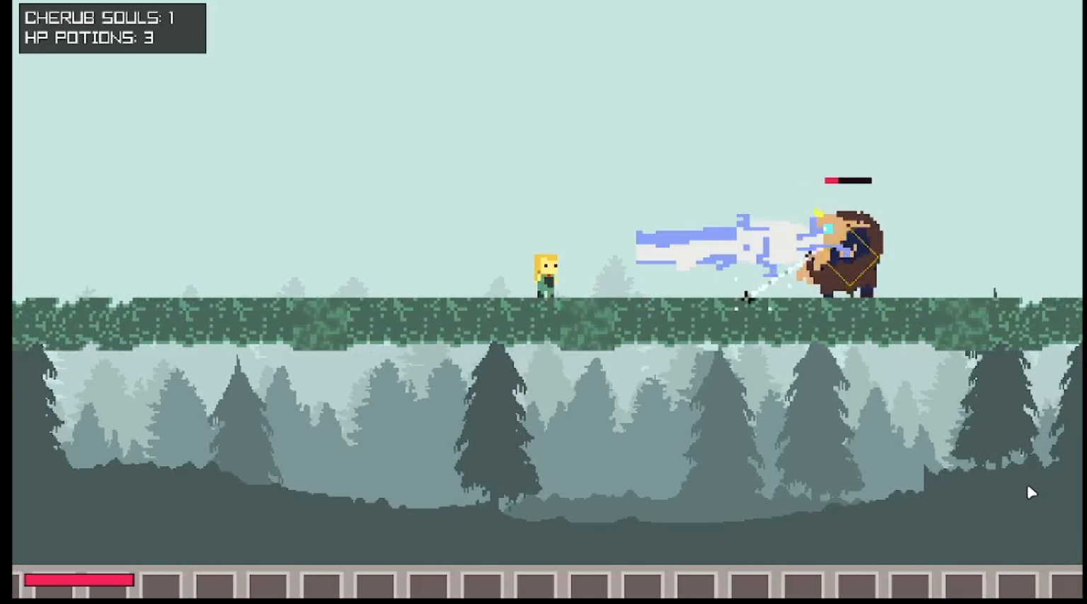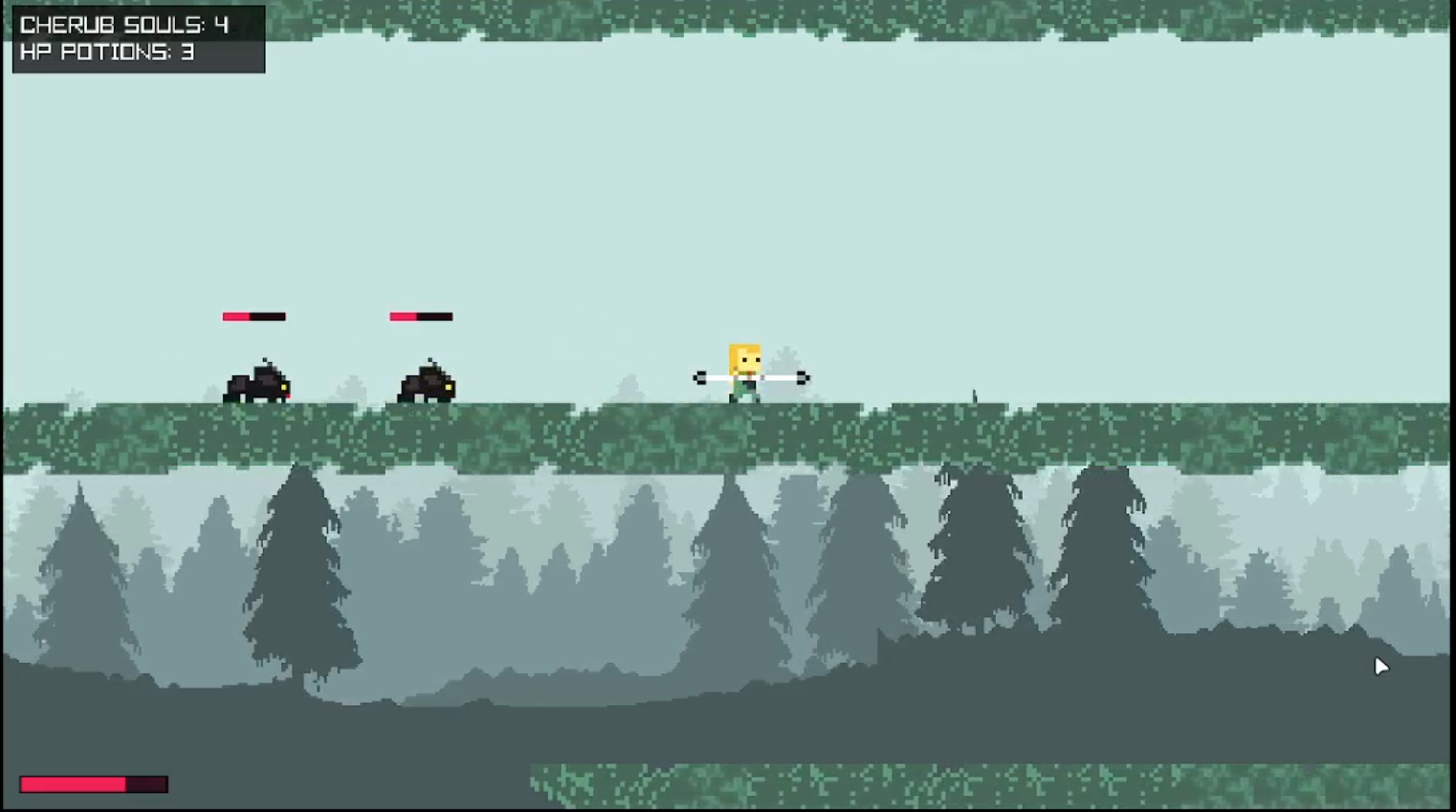 The gameplay is nice and the pixel art is cool + I love the ability to teleport onto your weapon! Good job :)