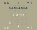 If I may make some suggestions: having piece king-damage values or basic movement behavior show up while hovering over a piece might be nice, and instead of shading the area where you can't play, either do that and brighten where you can play or just brighten where you can play. These changes will assist accessibility-wise for players new to chess fundamentals (and, uh... I just kept passing the turn, thinking there was something more to it, I guess assuming that the rules were that much different compared to chess ;_;).