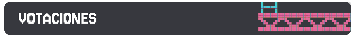 Habrá un voto por juego, solo podrá votar la persona que haya subido el juego por lo que os animamos a poneros de acuerdo con vuestr@s compañer@s de equipo a la hora de realizar las votaciones.
