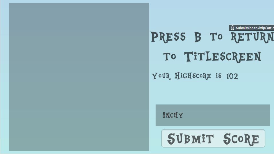 I really like the song, it's great. My high score is 102 but i can't upload it to the leaderboard, the button just doing nothing