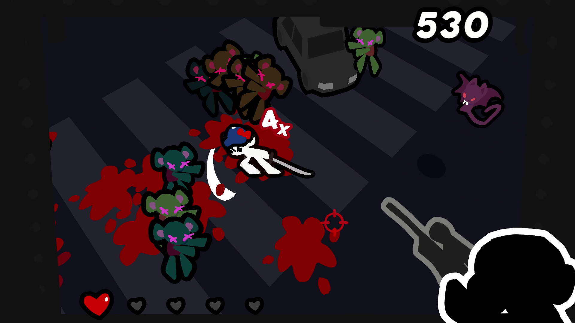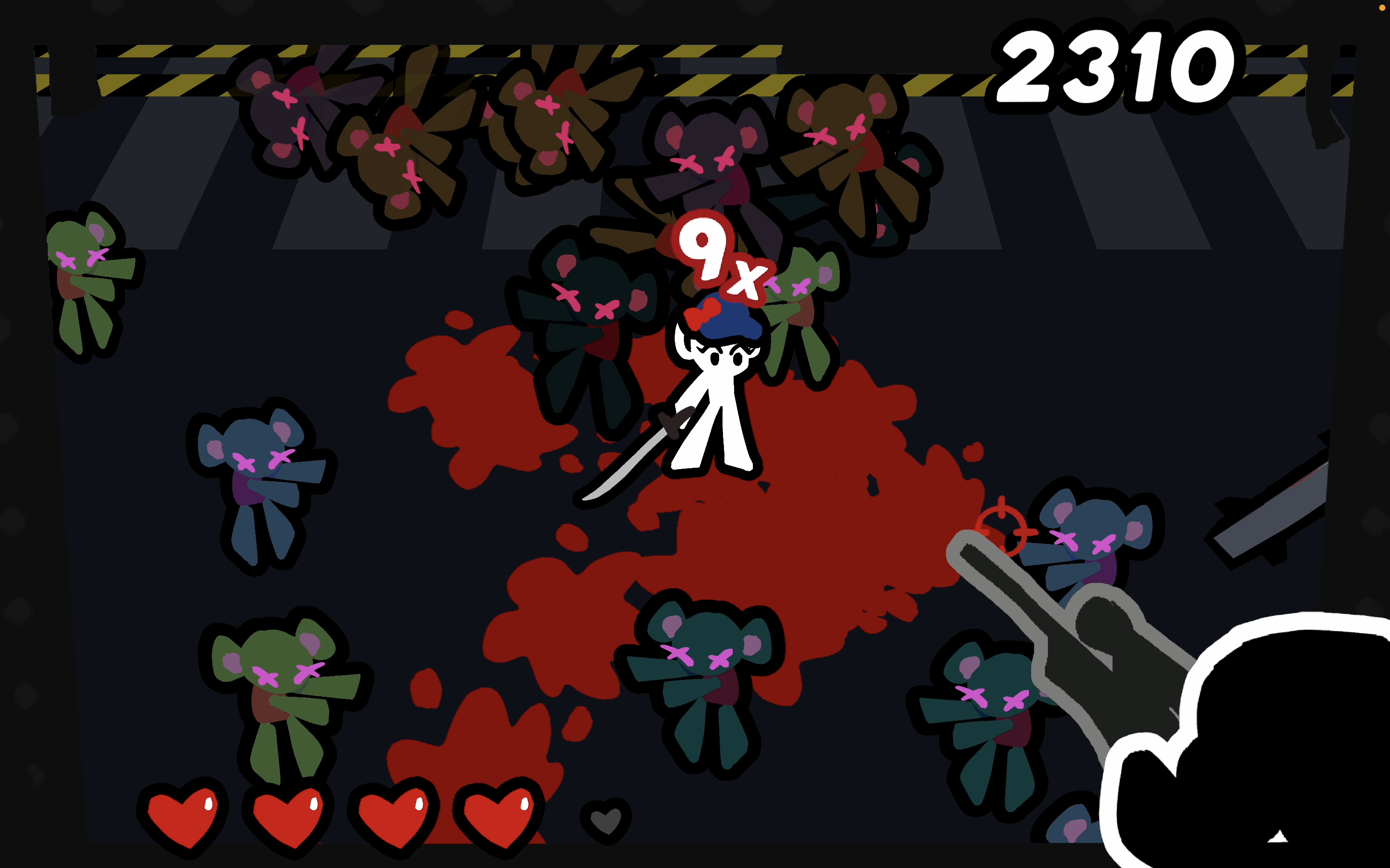 Such a simple concept, but very clean and powerful! I love the art, the gameplay of juggling shooting and geting combos with slashes is great! I seriously can't get higher than 15x combo without losing a life! Amazing execution with this game!!!