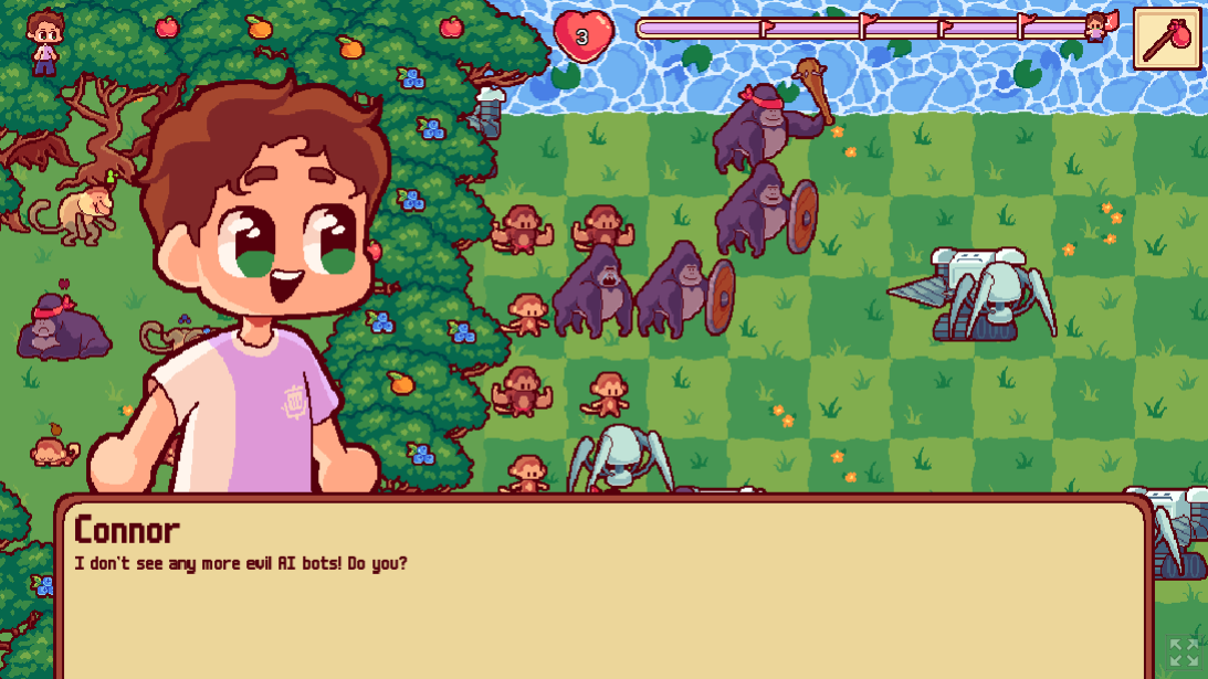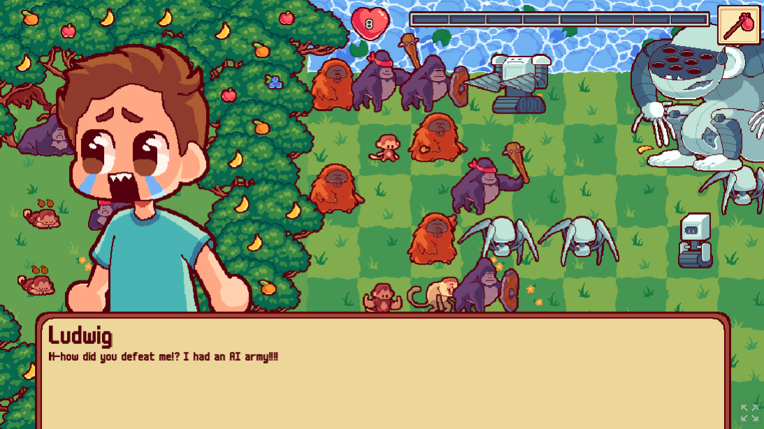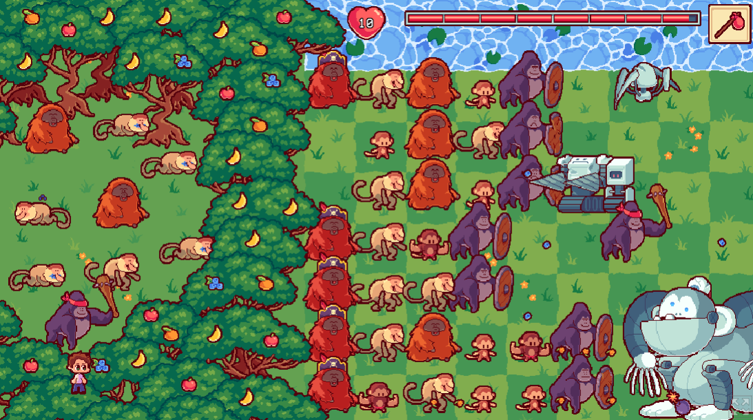 Really fun game! As the AI boss came out, I had to stop spamming fruit and actually pay attention to what fruit I was throwing and where lol. Interesting take on the tower defense genre.
