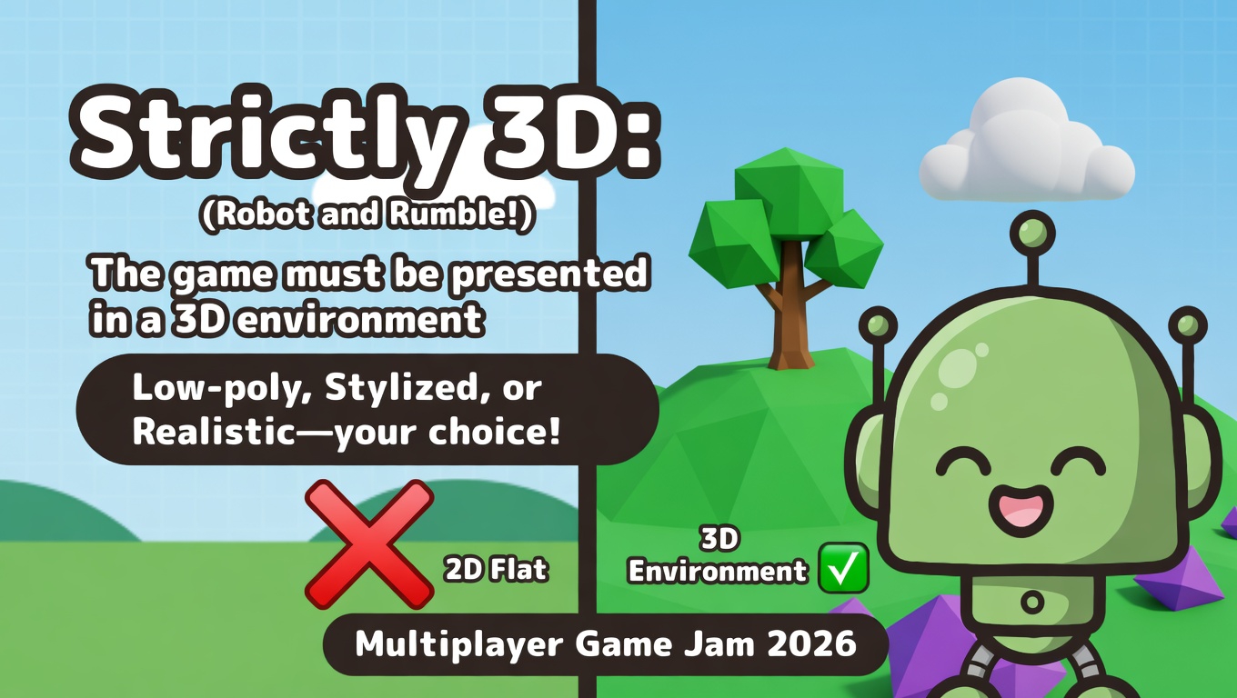 - Strictly 3D: The game must be presented in a 3D environment (Low-poly, Stylized, or Realistic—your choice!).