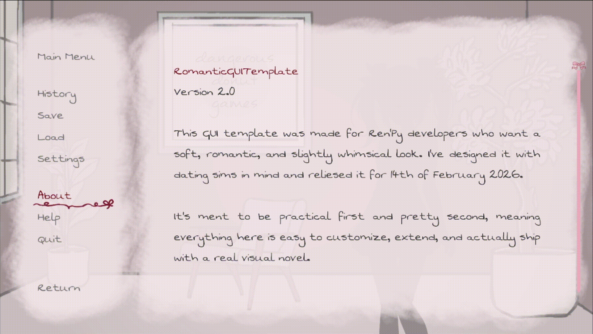 Romantic GUI Template for RenPy