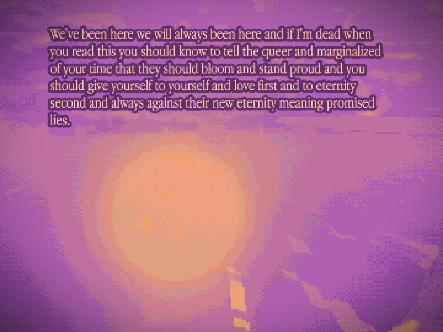 some slight improv noise in the OST. lots of dithering and colorbanding through shaders. the flame particle fx use noise for their particles :3