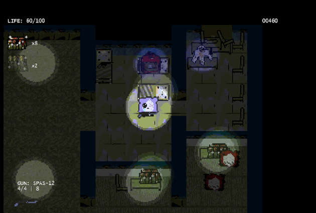Tive uma certa dificuldade nas horas que os inimigos estão na beira da porta de uma nova área da sala, e meio que os tiros ficam bugados. Também senti que o fato da protagonista só poder carregar uma arma, é um pouco limitada? Senti que essa foi a essência do game, mas seria interessante arranjar uma mochila para carregar mais armas no inventário, ou algo assim.