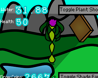 There are some functionality issues, such as that it's difficult to close the shop once it's open. It would also be cool have some kind of UI element for if the plant needs shade or the heat coil.
