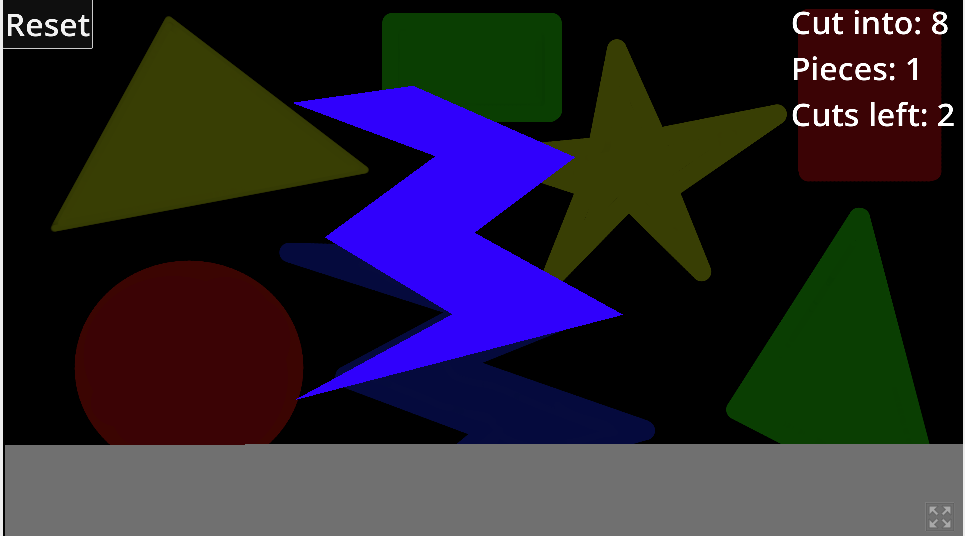Polygon slicing is a fiddly problem to solve, so this is nice work. The puzzle and gameplay are 100% build around the theme. Excellent entry!