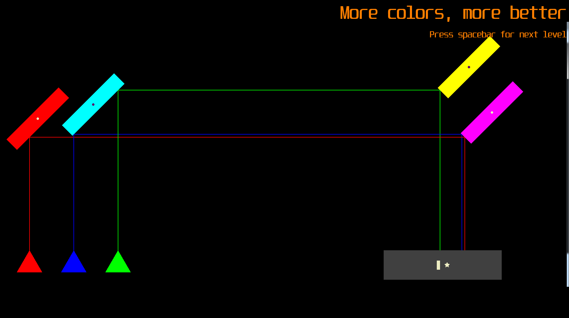 Great idea for a puzzle game using the reflective properties of RGB as a mechanic.
