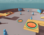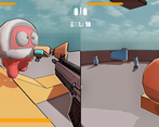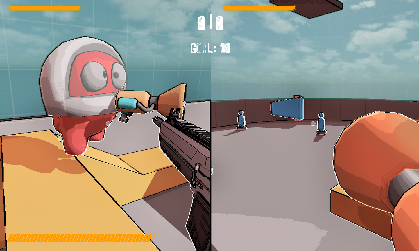Our game is the chaos. You only move when you shoot because someone (definitely not me) broke the movement code and also ramped up the recoil. That ends up in a crazy 1v1 shoot out where you aim, fly and slide trying to get the other player.