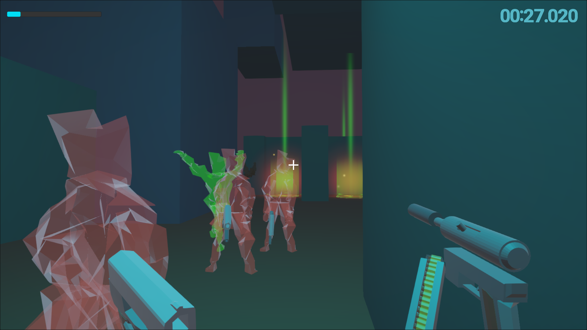 This is sick. I love the way you handle the magazine and the reloading. Really clever idea. Definitely chaotic but also quite fun. My one complaint is the spawn manager seems to be quite aggressive spawning enemies. I think a lot of times they would spawn right behind me? Maybe forcing them to spawn in a neighboring room or some solution to help the player get a bit more breathing room would help. Really nice work!