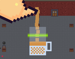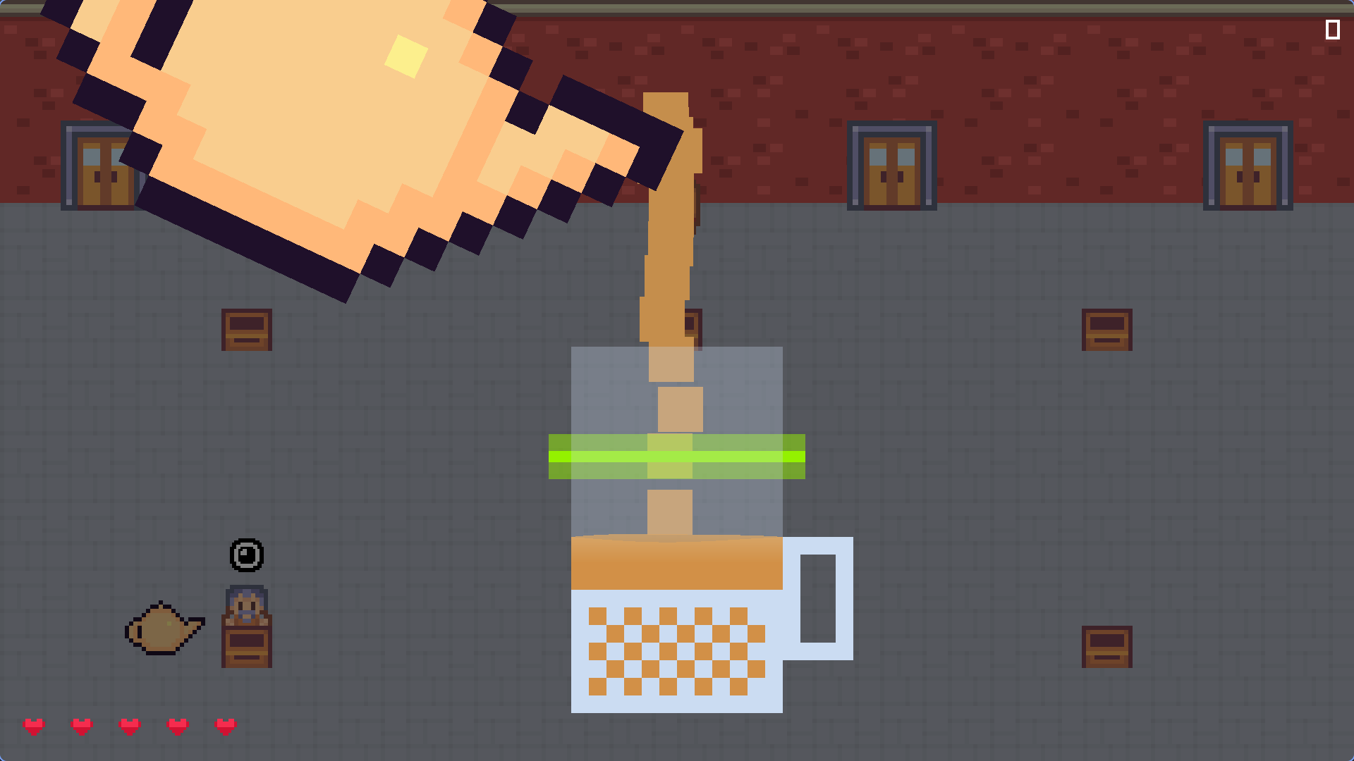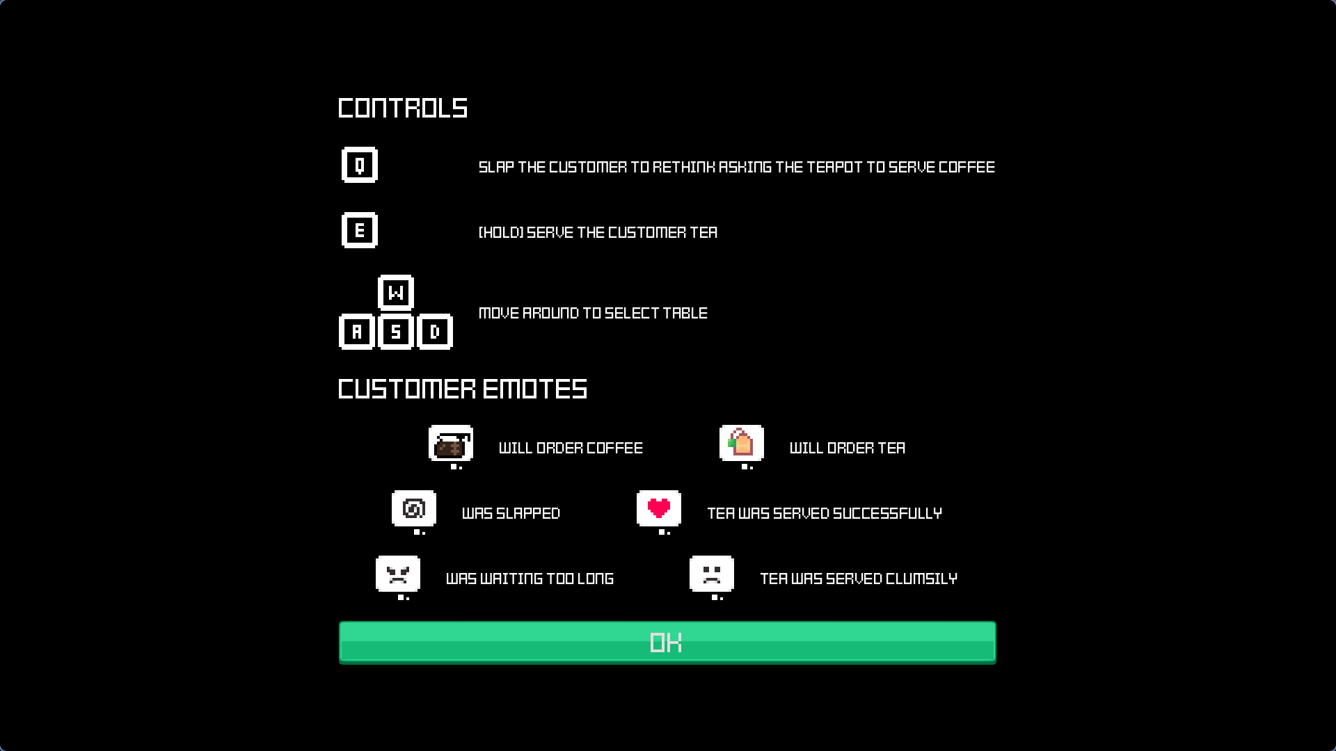Art is ok, I believe most of them are premade assets, the teapot sprite looks a bit mismatched from the rest of the characters, environment etc. I do like the tea water flowing shader though, that looks pretty good,