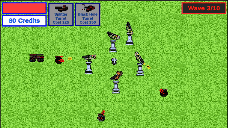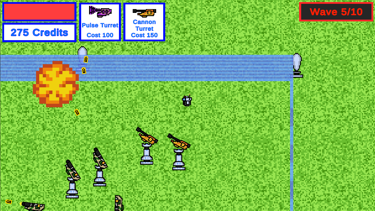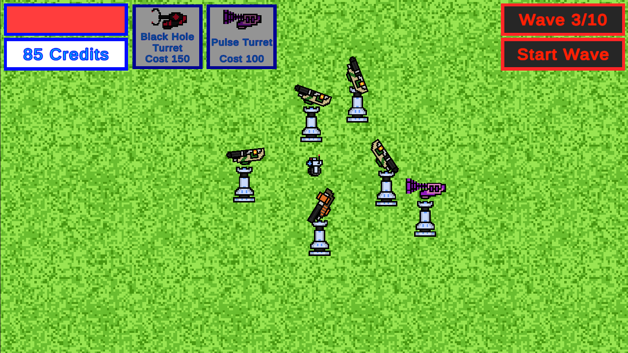 Really like how this game makes your turrets a double-edged sword, forces you to be more careful about what turrets you pick and where and when you place them. I found that trying to limit your turrets and dodge around all the projectiles, while a fun way to play, wasn't a great strategy, and that surrounding yourself with as many cheap turrets as possible to create an impregnable wall of death was much more effective and the only way I made it past wave 10. Anyways game's fun, I liked it, also please enable the fullscreen button for the web build.