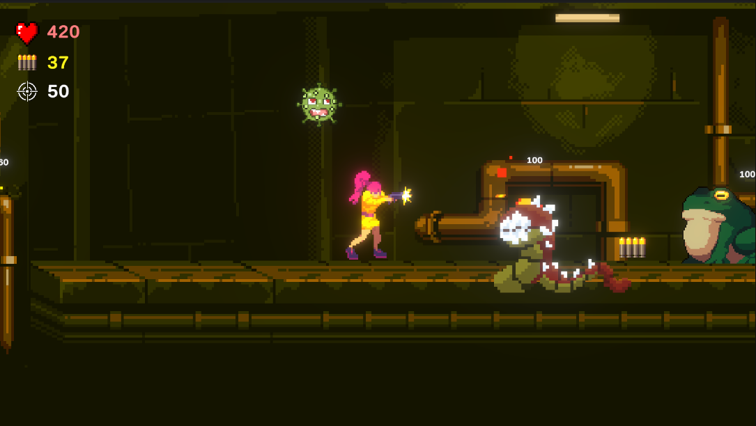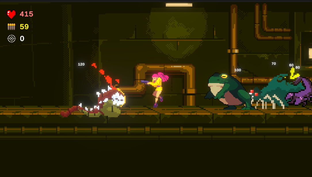 This is sick. The contra style wave shooter gives me Risk of Rain vibes. I realize you were short on time, but I think you did a great job in just 24 hours. Blending asset packs together can be really challenging, and I think you did a good job getting the palettes to match, and the art to feel readable. To the points you already made, some smarter enemies, a bit more variety in the gameplay, and just a bit more time to invest into this project would really give you something special. Nice work!