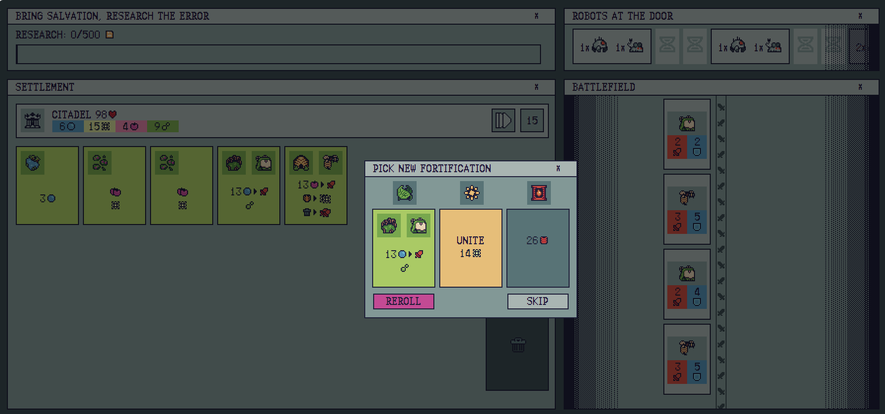 With the said however, I think there's a bug that hinders a good portion of the strategy of the game, which is that for me the dragging function to rearrange the card in my board doesn't function. So basically I just choose whatever upgrade I get without doing any other interactions, which I felt was quite limiting. Other than that the game mechanics seem to work fine. There some ok visual effects, but the most important ones I think that are missing the the one for actual player interaction with the UI elements. The game window was also the wrong size for my screen, so I had to zoom out on the web page to see fully.