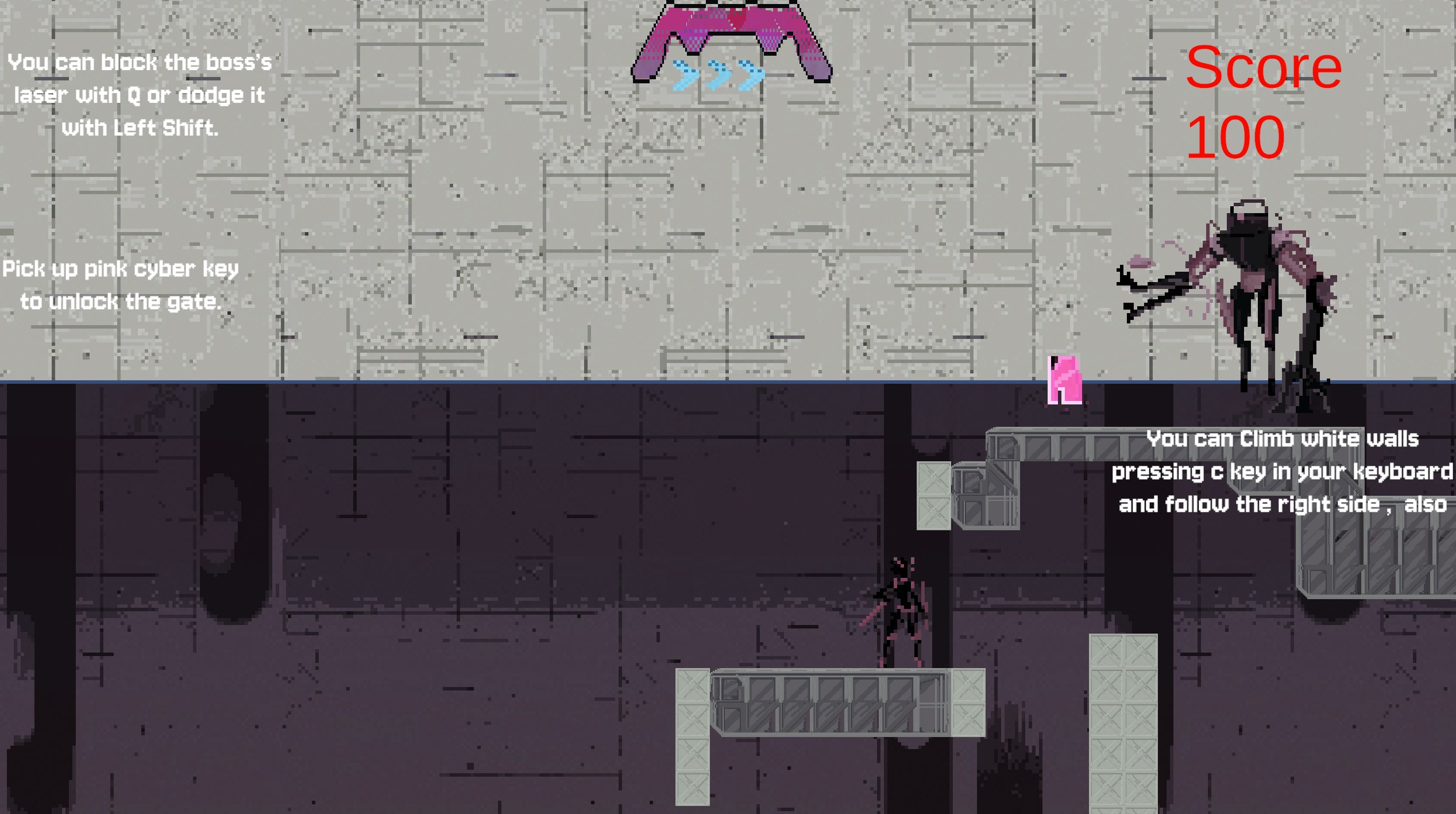 Nice art-style and cool sound effects! The glitch effect is also pretty cool, the first time i triggered it really gave me that "oh no the game is broken" vibe, the platforming was a bit on the tricky side though, and i'm not sure if fully intentionally. like, I felt like i had to cheese the friction a bit to get up, like the wall climbing wasn't always triggering and what i ended up doing is holding into the wall so i stay stuck, then jump up in the opposite direction to get further up. but it might have just been me misunderstanding the controls. having some inertia with the jumps maybe would help with making the movement feel more intuitive. Great job overall though :)