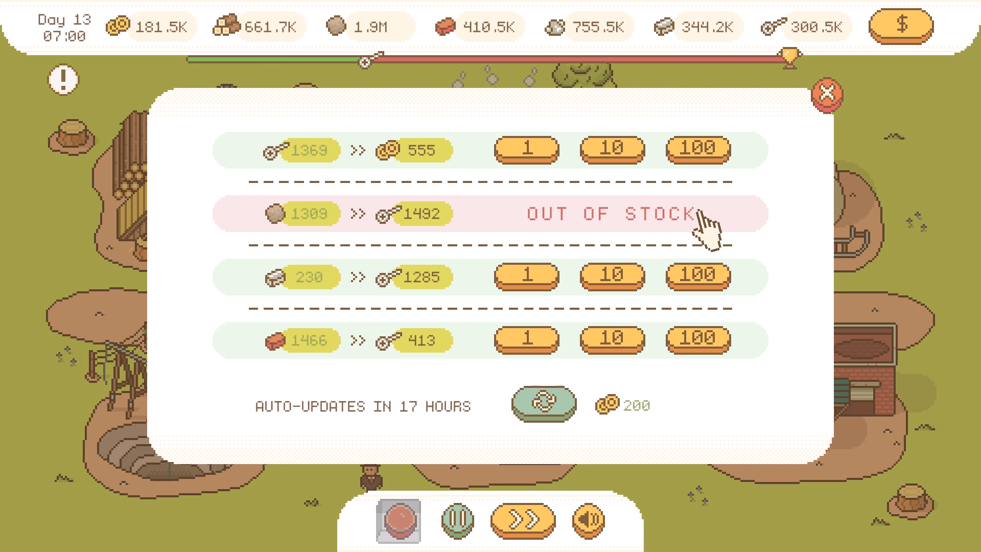 I noticed the market exploit completely by accident when I noticed that my resources weren't going down as I continuously spammed the x100 button. That was in my second run after a 40 day run because I was just vibing to the ambient music. Pretty well done, cramping my hand was definitely worth it.