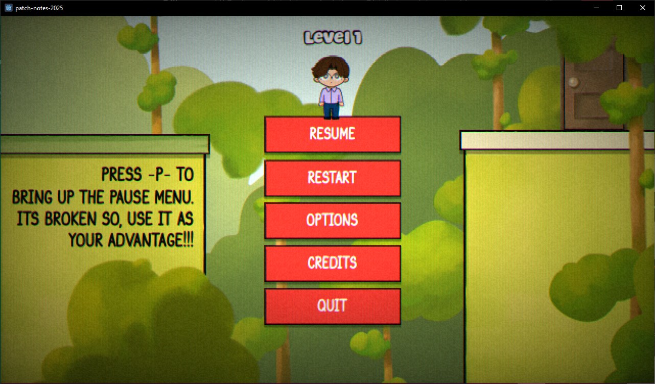 Congratulations! Using the "broken" pause menu as part of the game was really clever! I can see that a lot of work was put into this game.