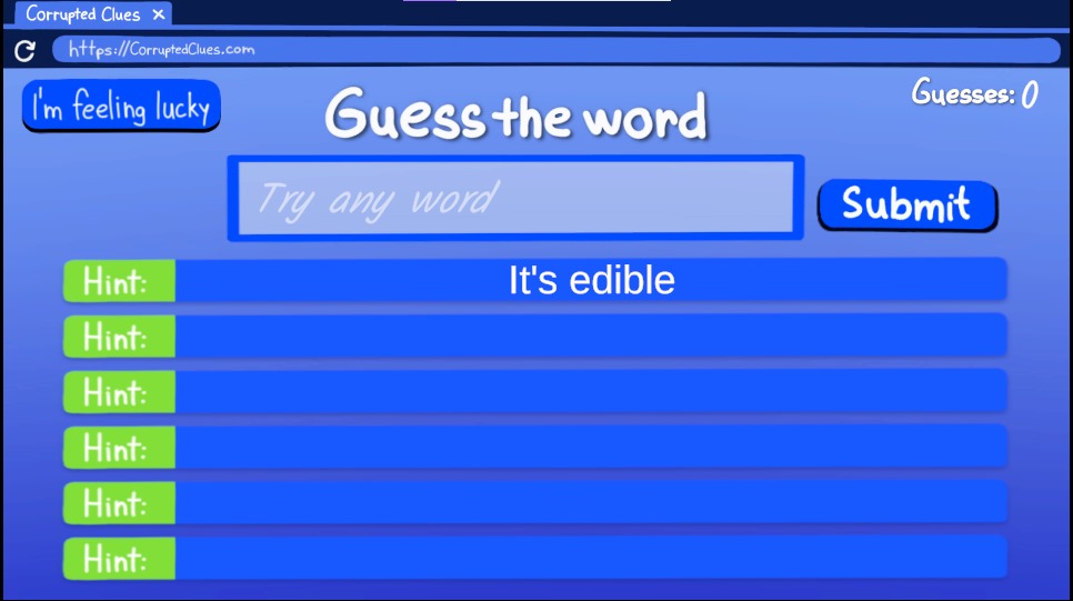 The game has corrupted clues that make the player use their detective skills to guess the word